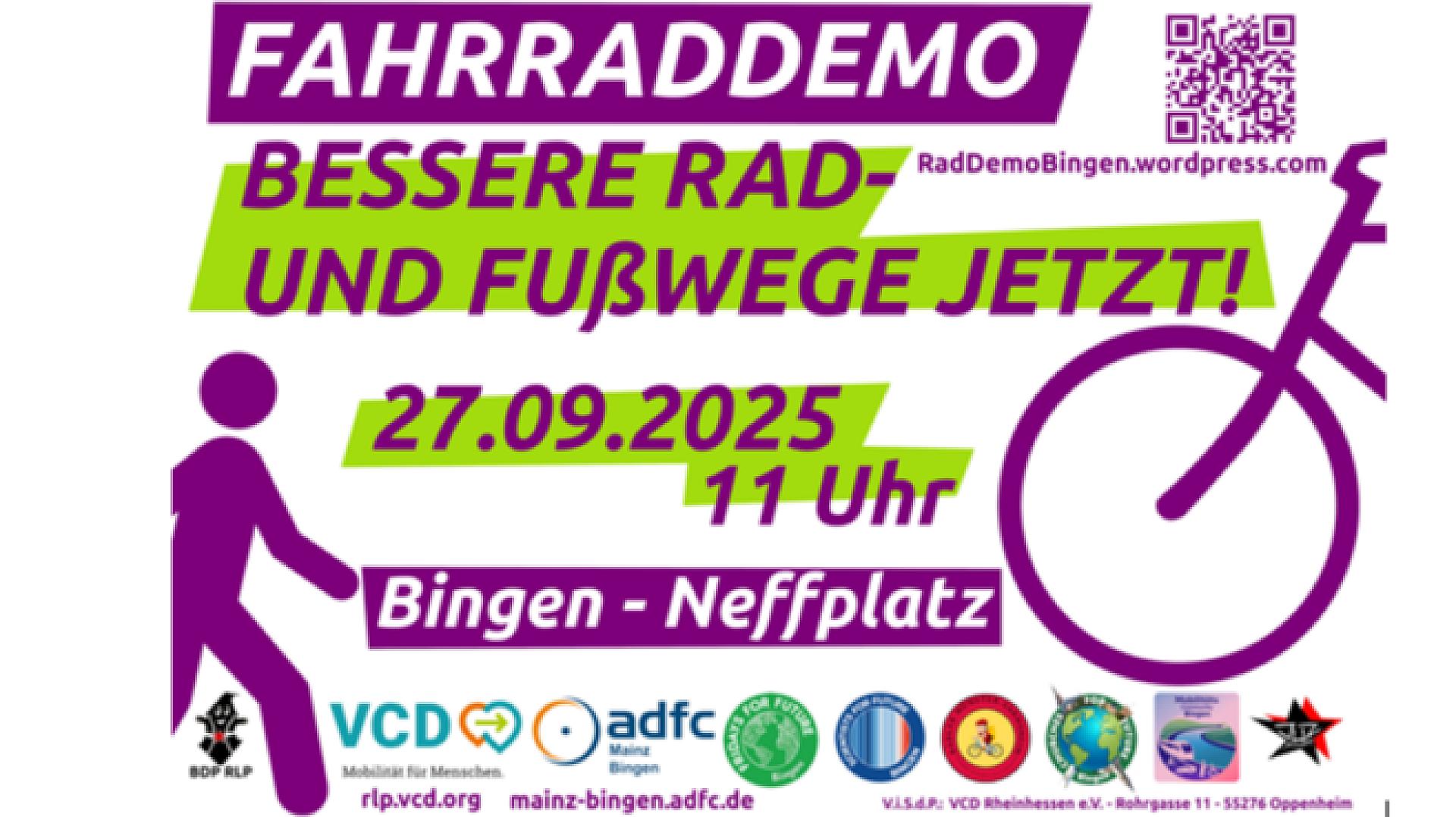 Grüne unterstützen Fahrrademonstration zwischen Münster-Sarmsheim und Bingen mit Halt auf dem Lindenplatz vom Bündnis klima- und umweltfreundliche Mobilität