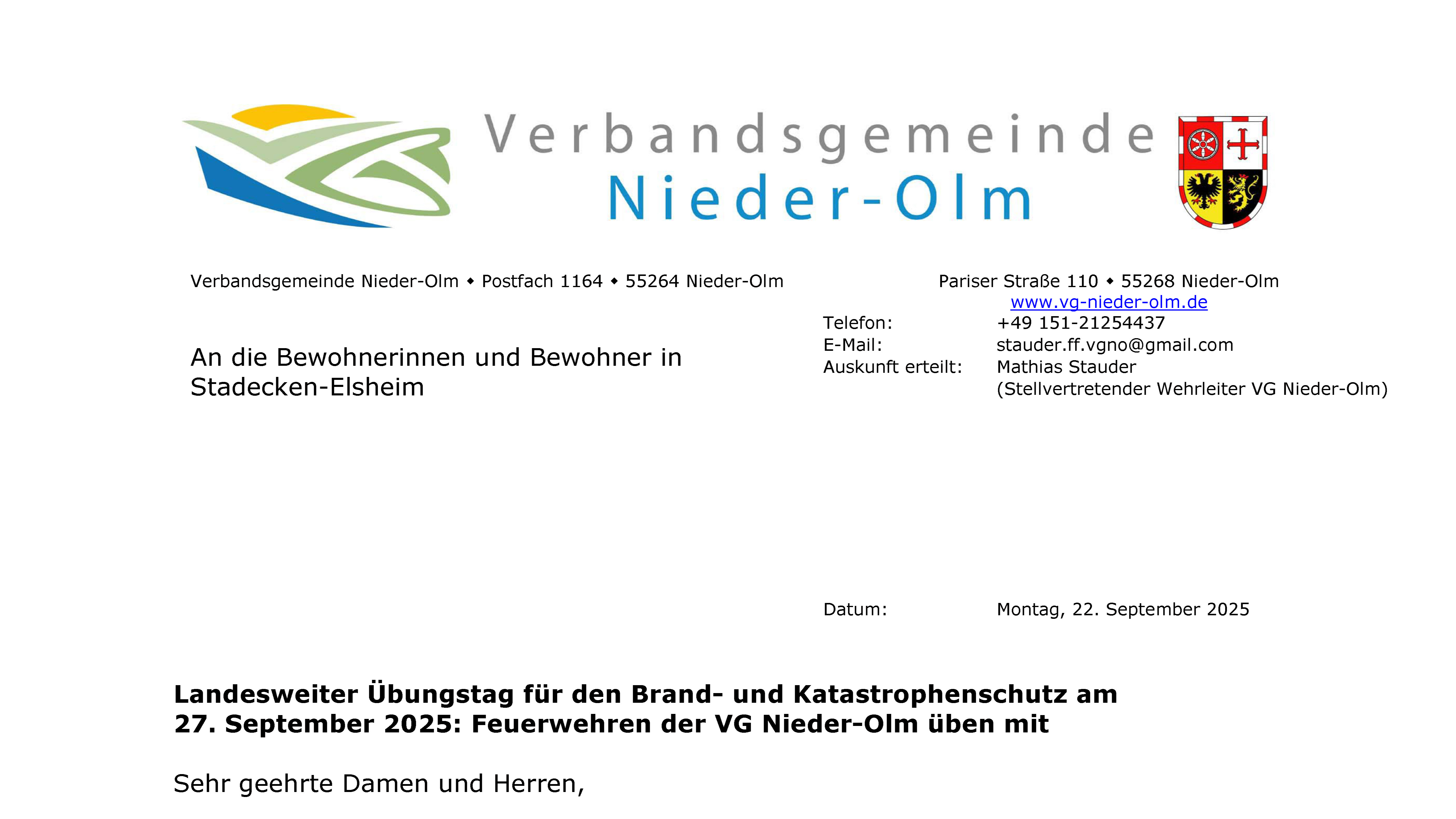 Landesweiter Übungstag in Stadecken-Elsheim | 27.09.2025
