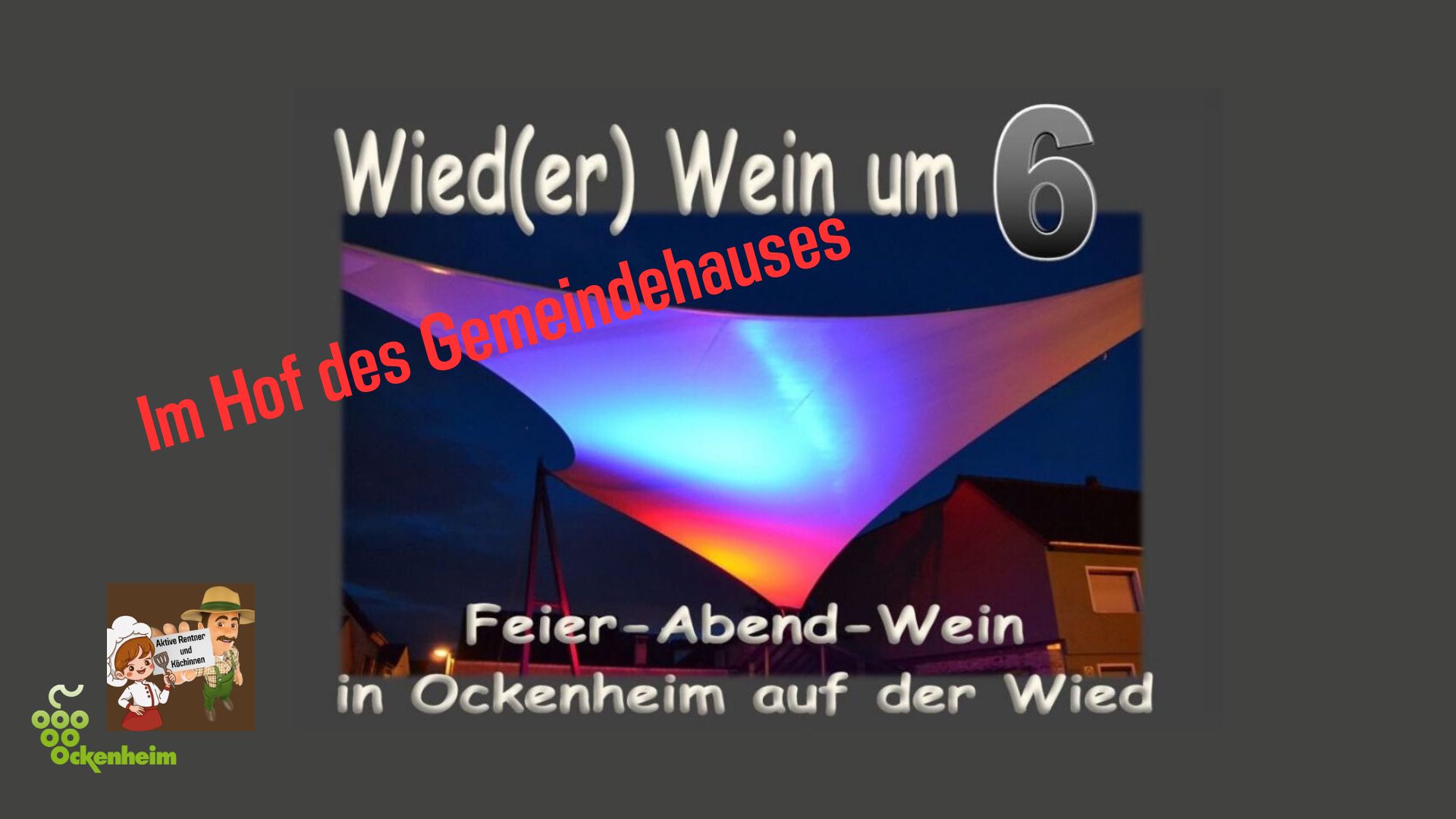 Ab 18:00 Uhr geht's los: Komm' einfach vorbei - Ockenheim trifft sich im Hof des Gemeindehauses; die aktiven Rentner laden gemeinsam mit den Köchinnen zu Wied(er) Wein um 6 ein.