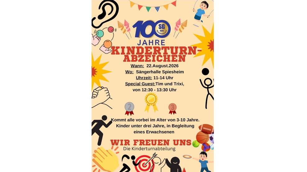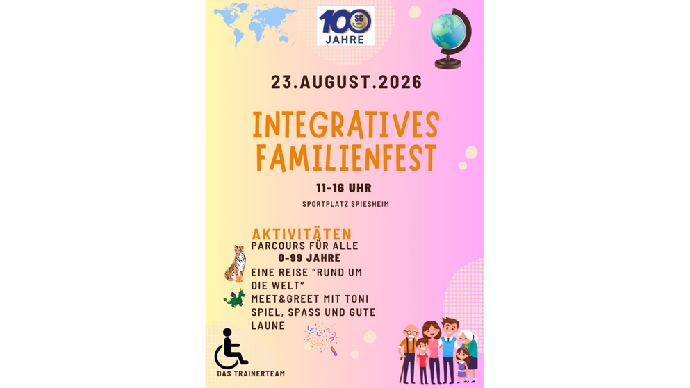 Ob groß oder klein, wir laden alle ein, bei der 100 Jahrfeier der SG Spiesheim, dabei zu sein.