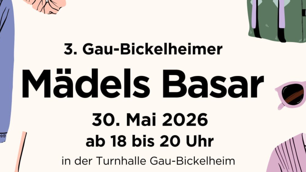 Am Samstag, den 30.05.2026 von 18 bis 20 Uhr findet unser Mädels Basar in der Turnhalle statt. Kommt vorbei und stöbert Euch durch tolle Kleidung, Accessoires und vieles mehr! Oder habt Ihr selbst gut erhaltene Schätze im Kleiderschrank? Dann meldet Euch jetzt als Verkäuferin an und macht mit. Es sind noch Tische frei! Das erwartet Euch: - Stylische Second-Hand-Teile - Leckere Snacks - frische Cocktails - gute Stimmung und nette Leute Vorbeikommen lohnt sich - egal ob zum Shoppen oder Verkaufen! Wir freuen uns auf Euch! Das Mädels-Basar-Team
