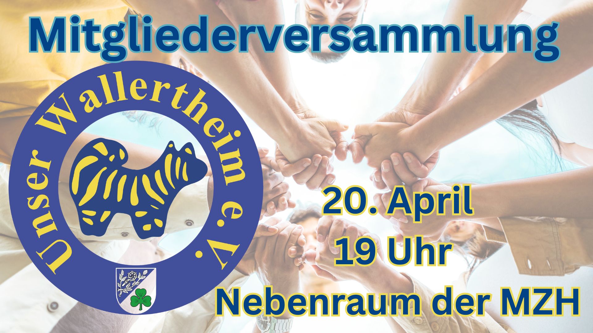 **Einladung zur Mitgliederversammlung von Unser Wallertheim e. V.** Ja, es gibt sie – die notwendigen Formalien wie Kassenprüfung und Entlastung des Vorstandes. **Aber keine Sorge:** Niemand muss Angst vor trockenen Themen haben – und ganz sicher fängt sich hier auch niemand „einen Job ein“. 😉 Im Mittelpunkt stehen der **Rückblick auf ein lebendiges Vereinsjahr**, der **Ausblick auf kommende Ideen** und vor allem der **Austausch miteinander**: zuhören, mitreden, informieren, mitgestalten – ganz entspannt. Eure Meinung zählt, eure Anwesenheit auch. Kommt vorbei, bringt Neugier mit – für alles andere ist gesorgt. Wir freuen uns auf euch!