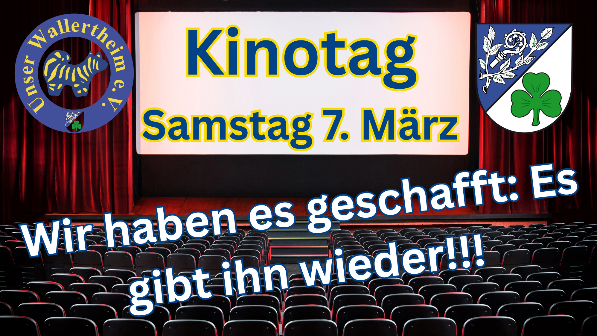 🎬 Nur noch wenige Tage – Kinotag in Wallertheim! Am Samstag ist es soweit! 📽️✨ Unser Kinotag in der Mehrzweckhalle steht vor der Tür – und wir freuen uns riesig auf einen Tag voller Lachen, Spannung und Gemeinschaft. 👨👩👧👦 16:00 Uhr – „Die Schule der magischen Tiere“ Perfekt für Familien und alle, die magische Abenteuer lieben. Einlass 15.30 Uhr. 🌍 19:30 Uhr – „Ein Dorf sieht schwarz“ Humorvoll, berührend und absolut sehenswert. Einlass 19.00 Uhr 📍 Mehrzweckhalle Wallertheim 💛 Alles gegen Spende – kommt vorbei, genießt Snacks & Getränke und unterstützt gleichzeitig das Dorfleben. Gerade weil es immer schwieriger wird, solche Veranstaltungen möglich zu machen, zählt jeder Besuch. Also: Weitersagen, vorbeikommen, gemeinsam einen schönen Tag erleben! 🍿✨