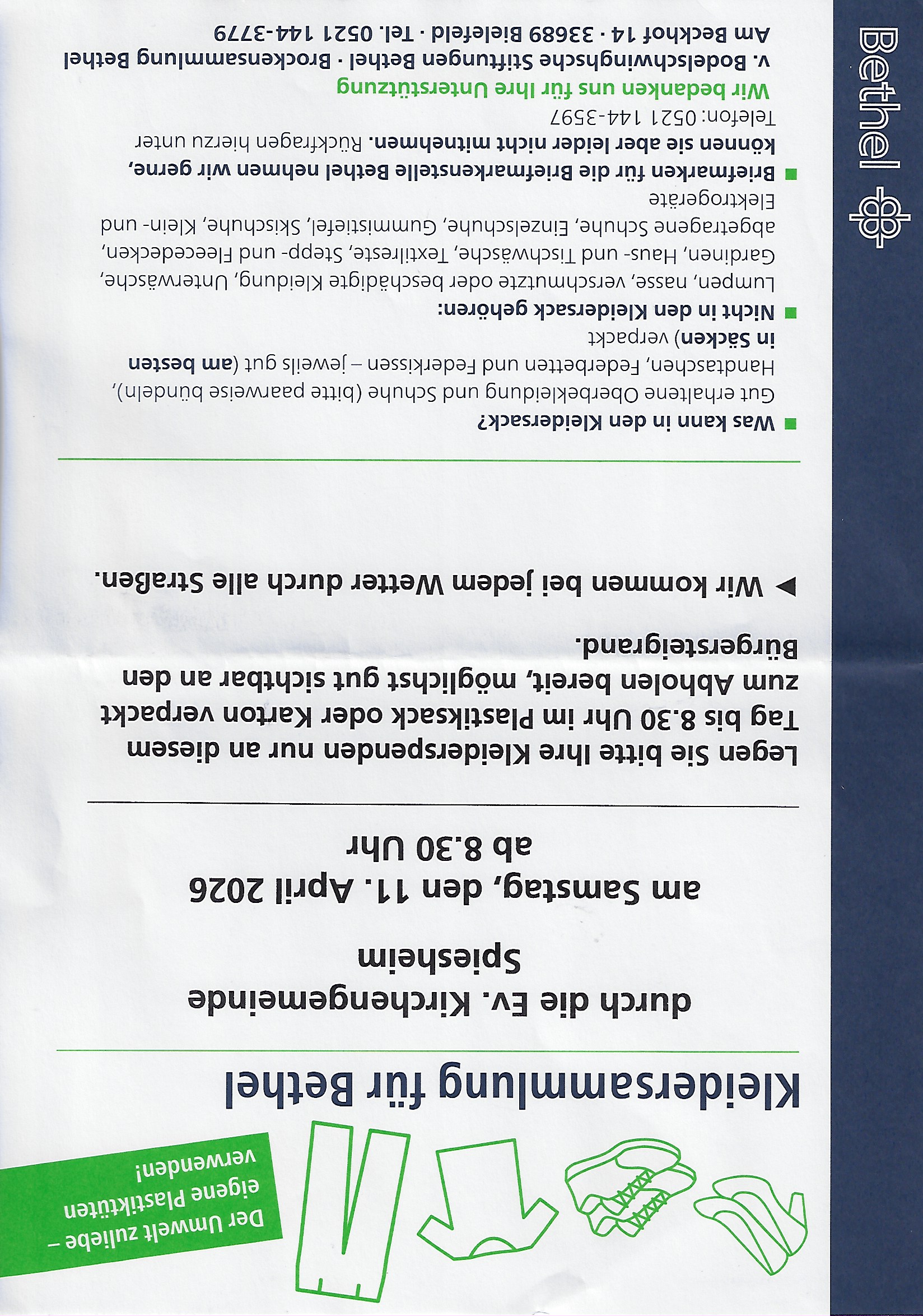 Alle Jahre wieder: Kleidersammlung für Bethel!