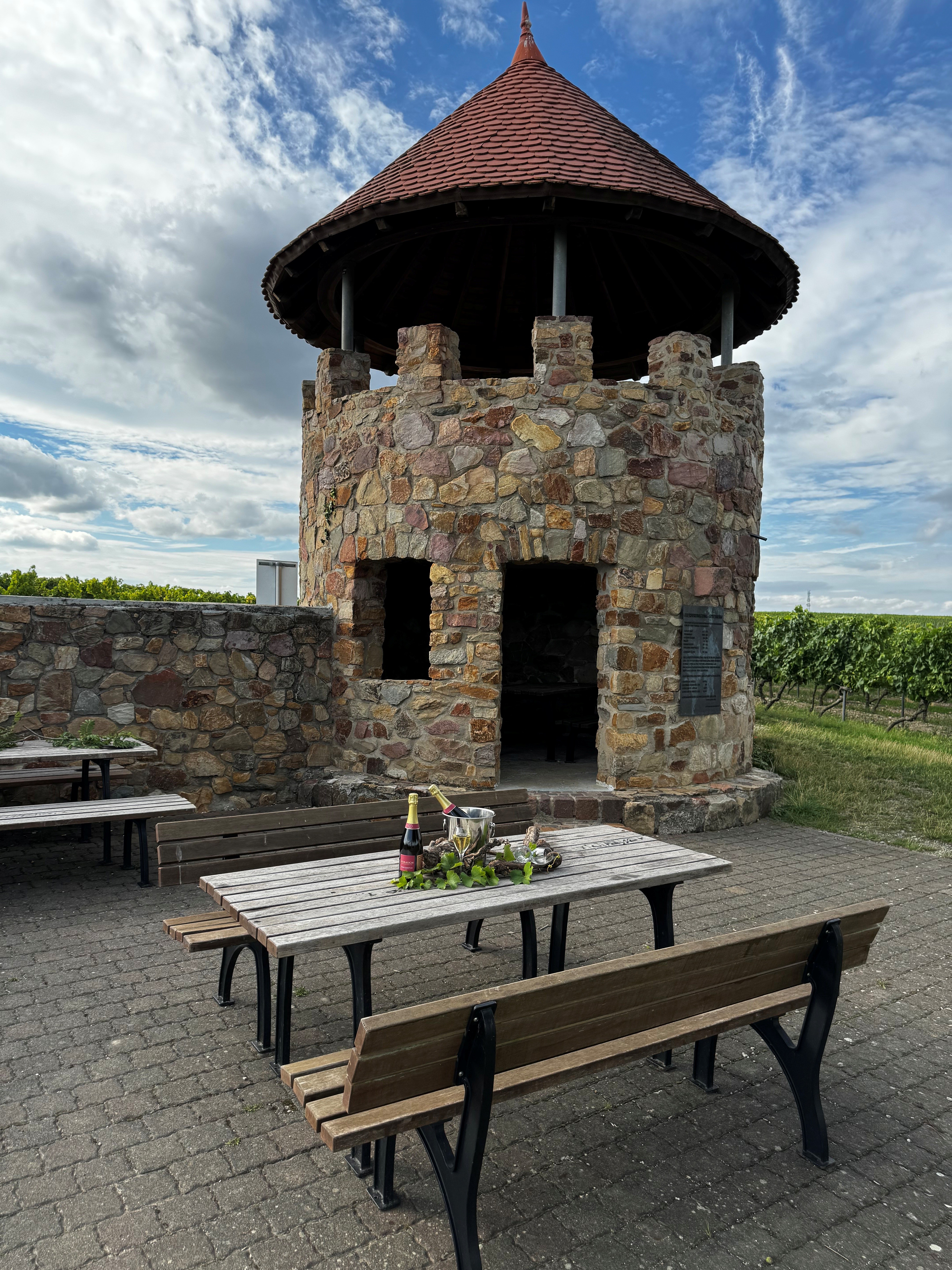 Am Weinbergsturm genießen wir ein Glas Winzersekt und entdecken gemeinsam die prickelnde Welt des Schaumweins.