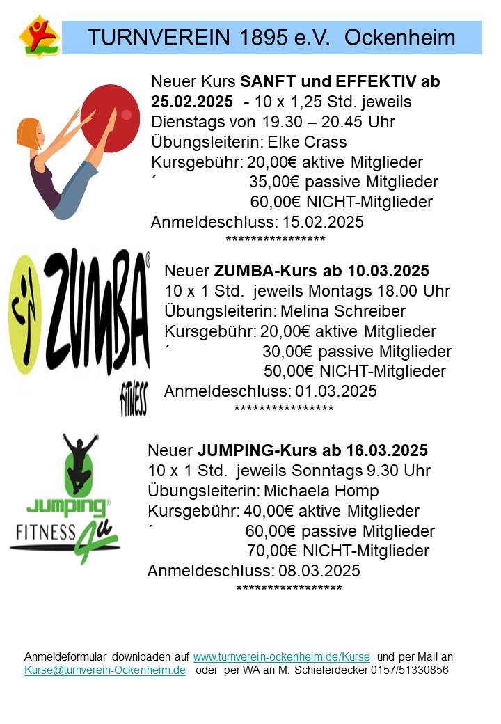 Zumba, Fitness und Jumping: Neue Kurse 2025