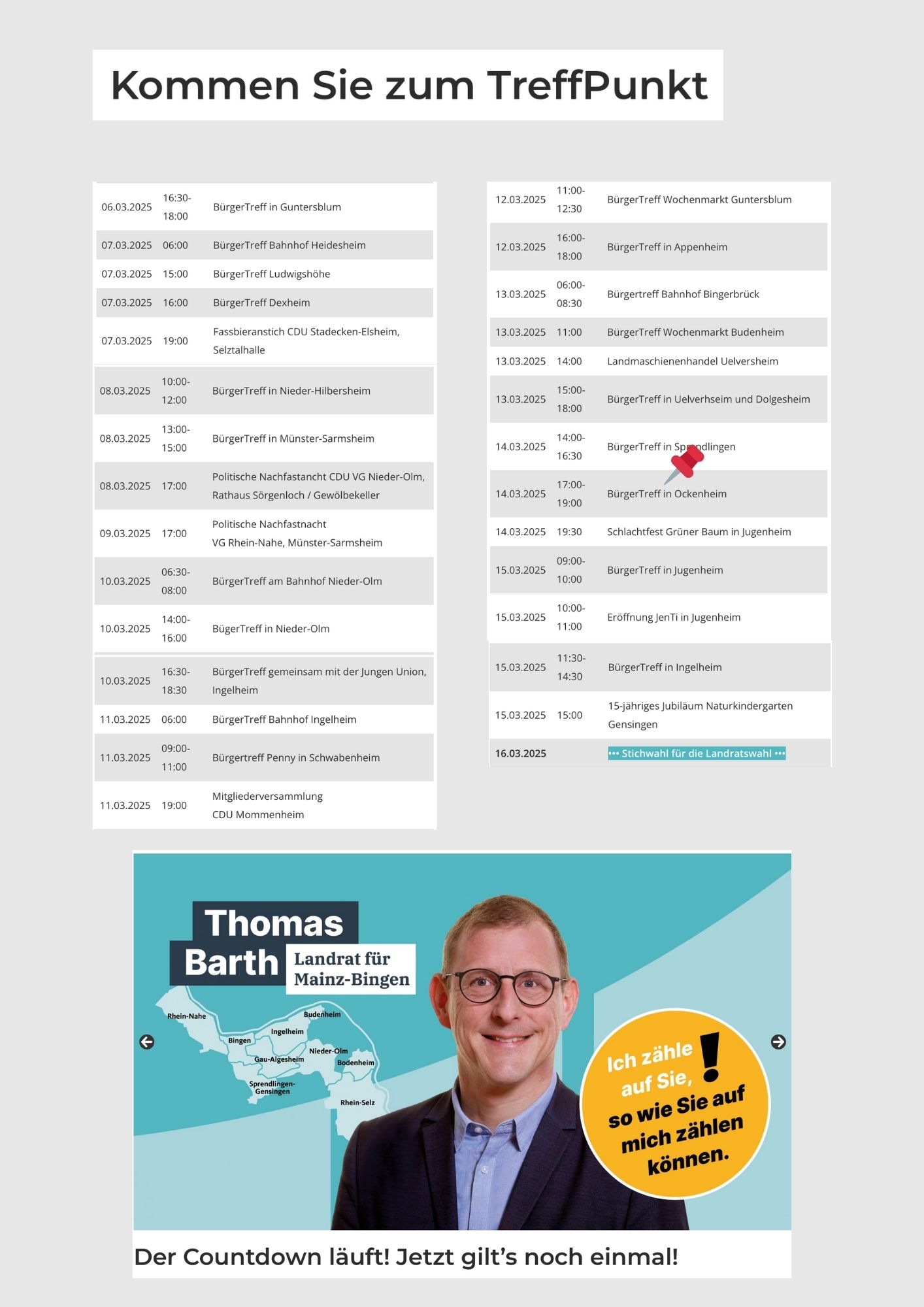 📢 Am Sonntag, 16. März 2025, findet die Stichwahl des Landrats für Mainz-Bingen statt. Die Wahllokale sind von 8 bis 18 Uhr geöffnet.