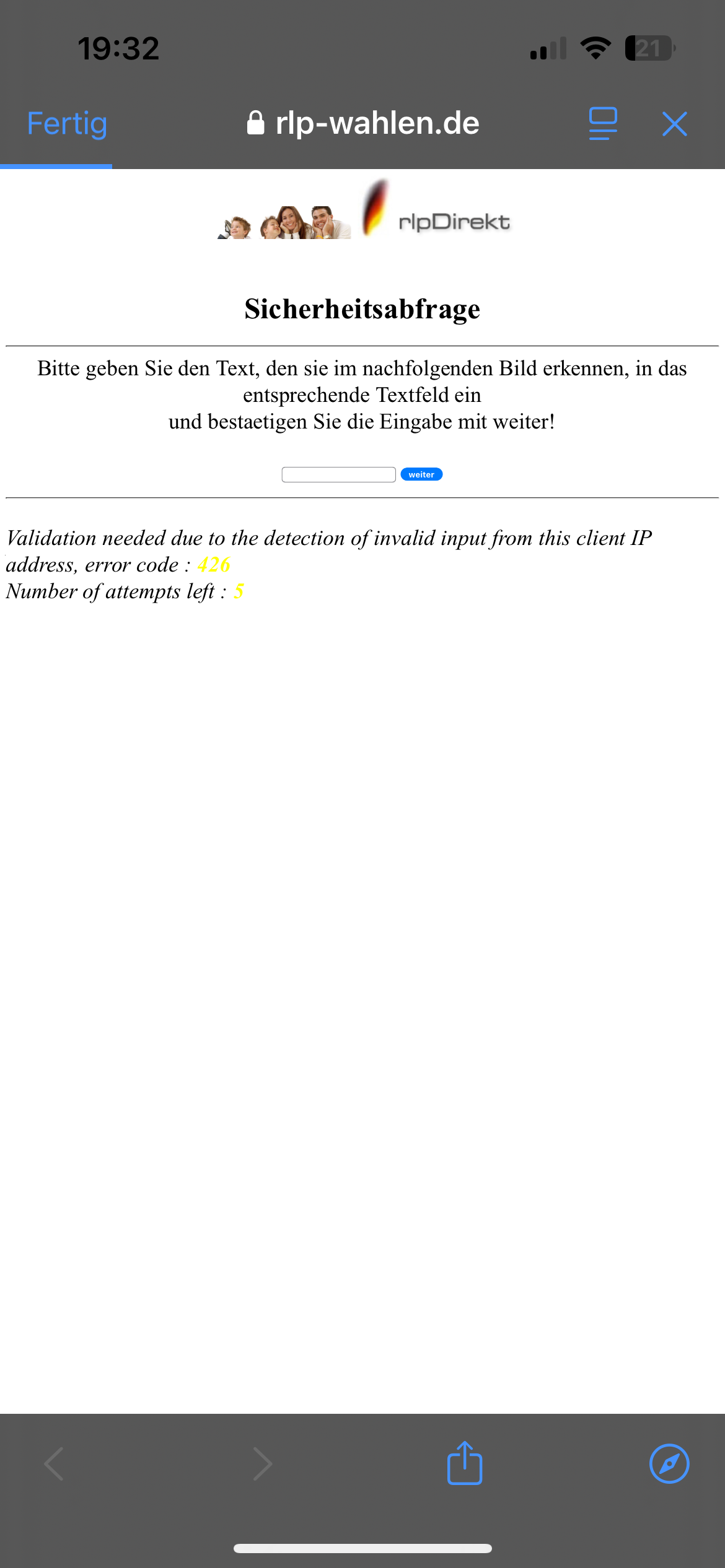 Zur Info: Nach Aufruf des Links kommt immer mal eine "Sicherheitsabfrage" wie unten abgebildet - TIPP: Einfach immer wieder neu den Link laden, i.d.R. klappt's.