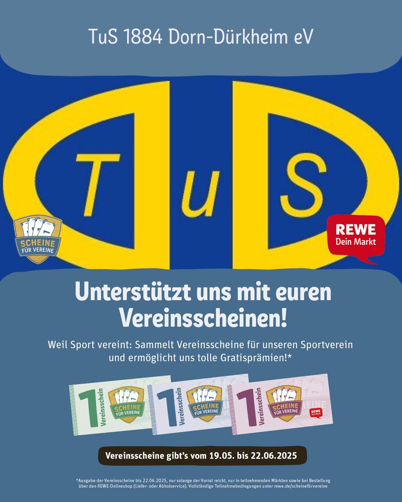 Sammelt Vereinsscheine für unseren TuS DD. Jetzt pro 15 € Einkaufswert 1 Vereinsschein sichern und dem Verein tolle Gratisprämien ermöglichen.