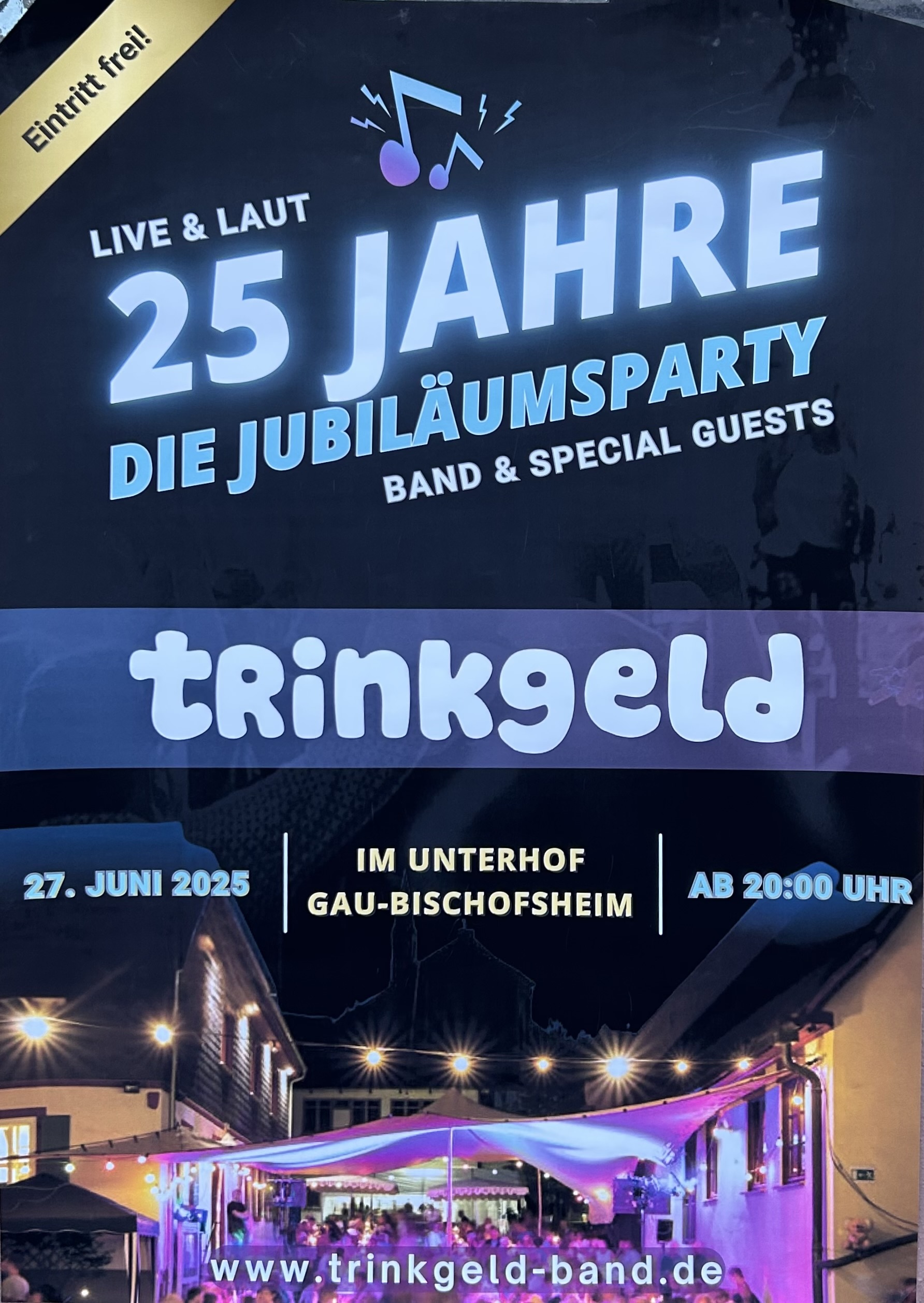Im Anschluss daran freuen wir uns auf die Band, mit der 2001 alles begann. TRINKGELD hat für diesen Abend einen einmaligen und sehr besonderen Jubiläums-Gig für uns vorbereitet. Freut Euch auf viele Überraschungen, Special Guests, Gänsehautmomente und eine durchtanzte Nacht zum Kerbeauftakt.