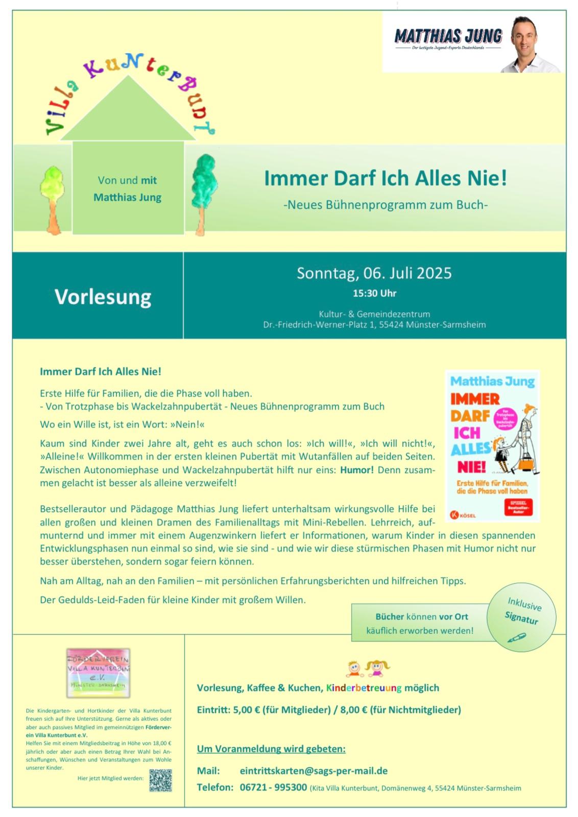Eintritt 5€ für Vereinsmitglieder des Fördervereins Villa Kunterbunt