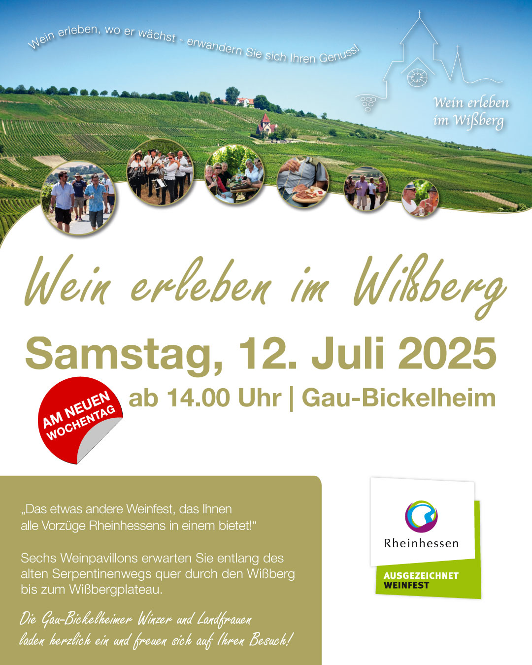 Am Samstag 12.07. findet ab 14.00 Uhr unser traditionelles „Wein erleben im Wißberg“ statt.