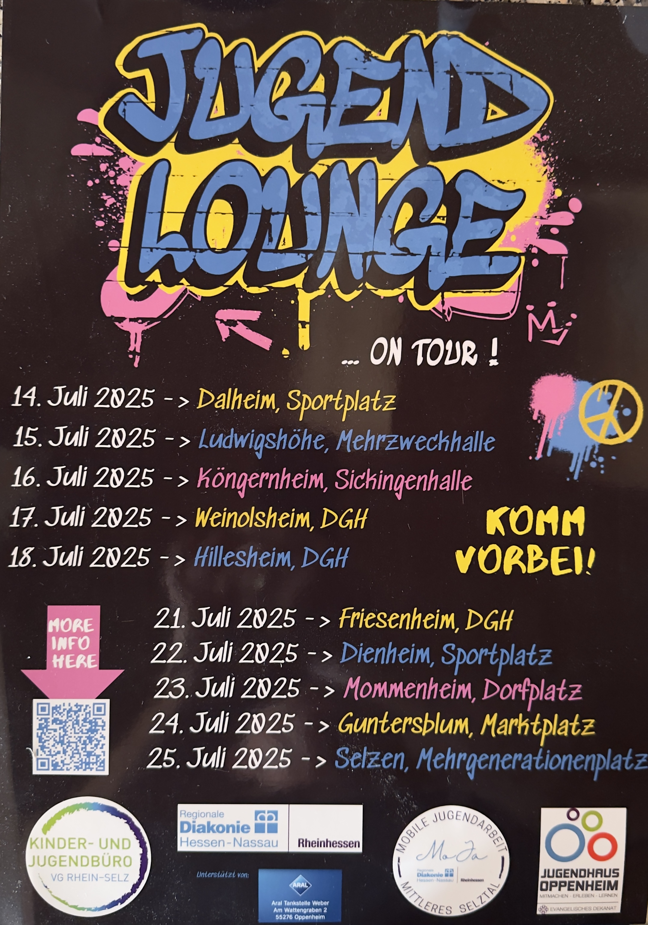 Das Jugendbüro der Verbandsgemeinde hat für die Sommerferien verschiedene Termine für die Jugend-Lounge bekannt gemacht. Im anhängenden Bild sind die Termine zu erkennen. Allen Teilnehmern viel Spaß dabei.