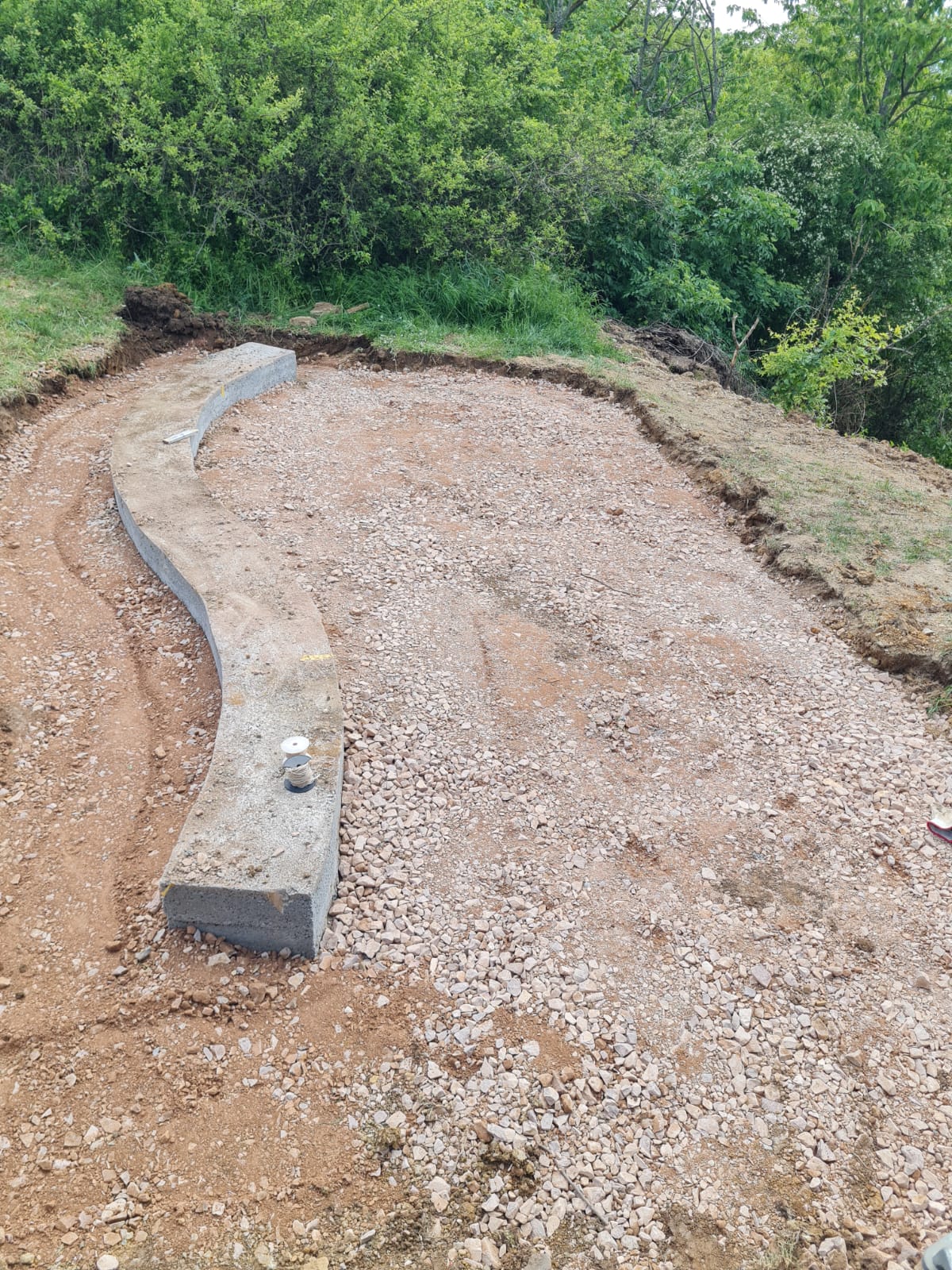 Parallel zu diesen Aktionen bearbeiten wir weitere Baustellen - für ein Projekt, das uns bis zum Jahresende (und vielleicht darüber hinaus) beschäftigen wird, wurde letzte Woche das Material geliefert. Baldmöglichst soll es mit der Beschattung eines Teils des Außengeländes unserer Kita losgehen...