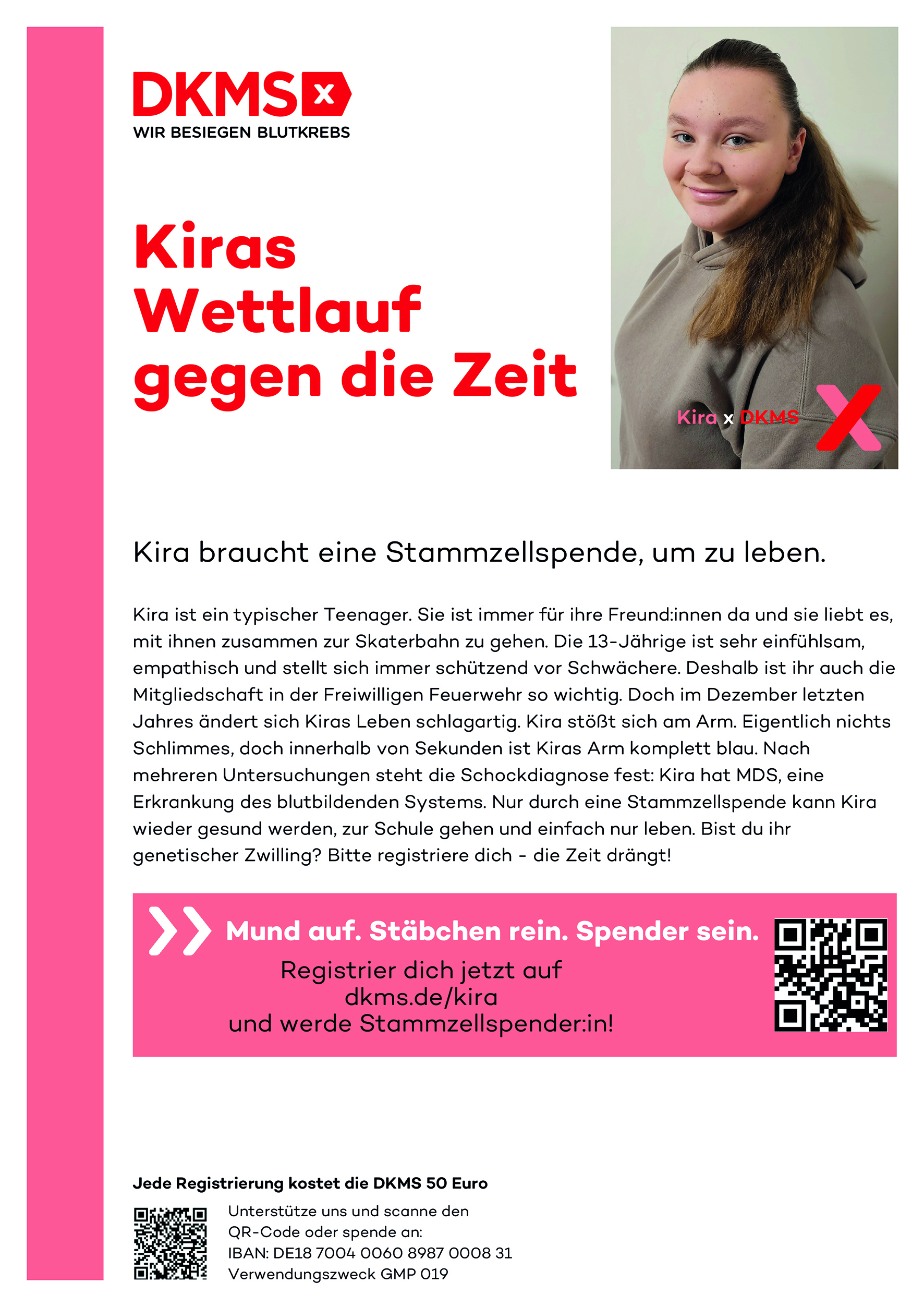 Falls ihr noch nicht bei der DKMS registriert seid, BITTE NACHHOLEN! Sie sucht leider immernoch ihren genetischen Zwilling! Ein Wettlauf gegen die Zeit.