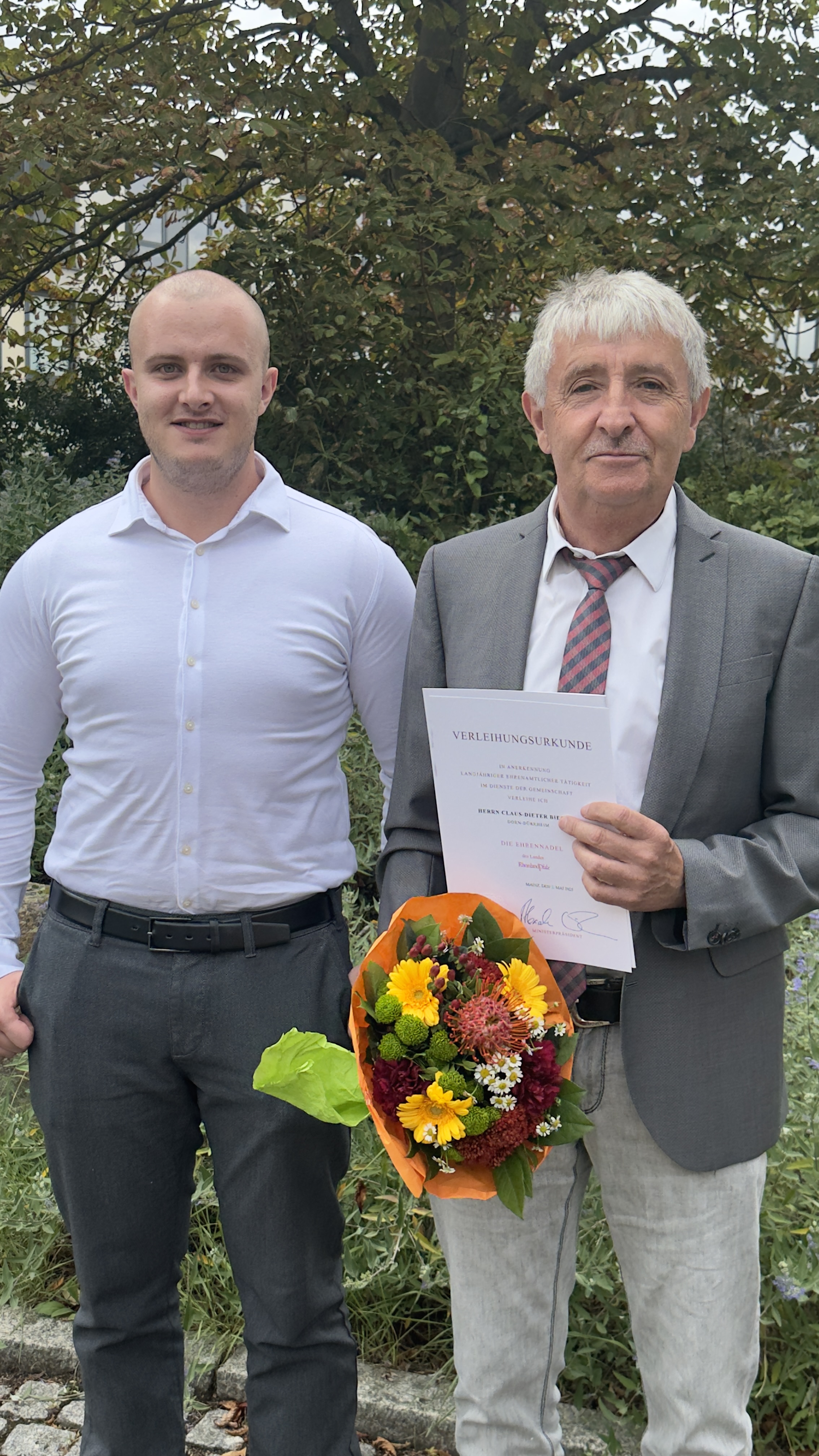 Heute erhielt unser Altbürgermeister Claus-Dieter Biegler in einer schönen Feierstunde in der Kreisverwaltung die Landesehrennadel des Landes Rheinland-Pfalz durch den 1. Kreisbeigeordneten Wolf überreicht. In einer kurzen Laudatio wurde die politische Karriere in seiner Gemeinde dargestellt und sein Engagement gelobt. In Anwesenheit seines Sohnes nahm er die Auszeichnung freudig entgegen.