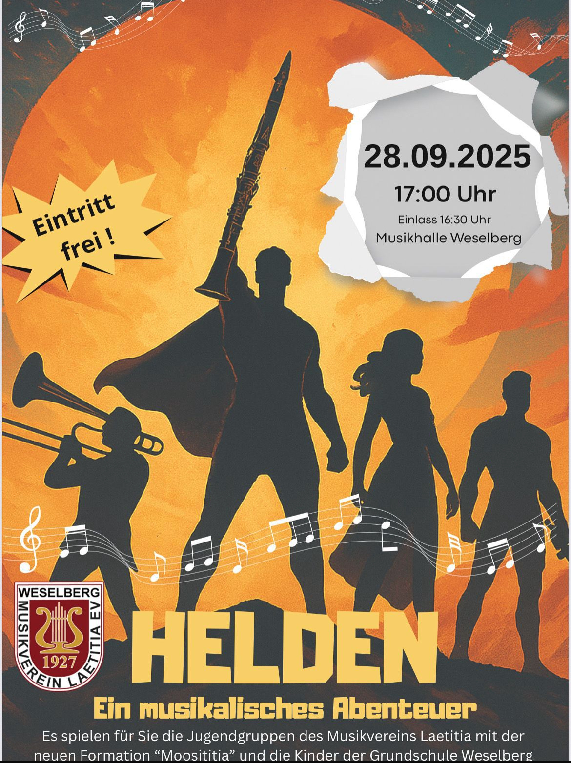 Das neu gegründete Jugendblasorchester MOOSITITIA – ein Zusammenschluss der Moosalbtaler Blasmusik und des Musikvereins „Laetitia“ Weselberg – lädt herzlich ein zu einem besonderen Konzert: