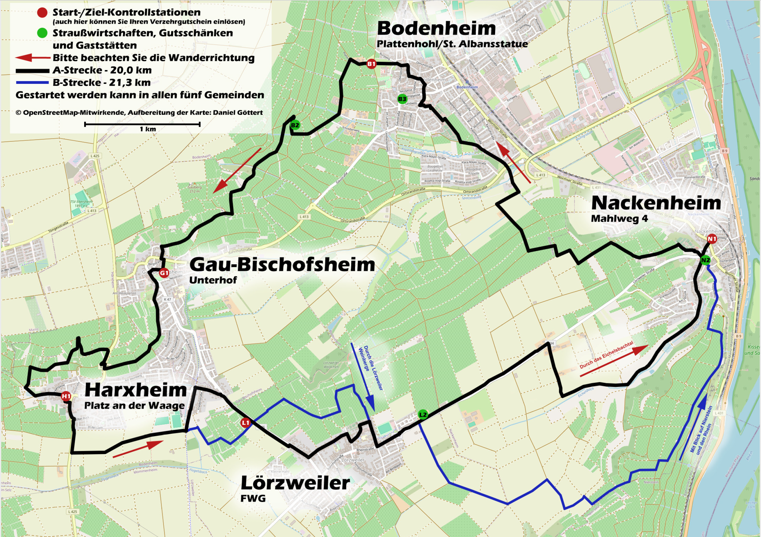 Zum 38 mal veranstaltet der Verkehrsverein Gau-Bischofsheim mit den anderen (Heimat- und) Verkehrsvereinen der VG Bodenheim den Zwiebelkuchenwandertag.