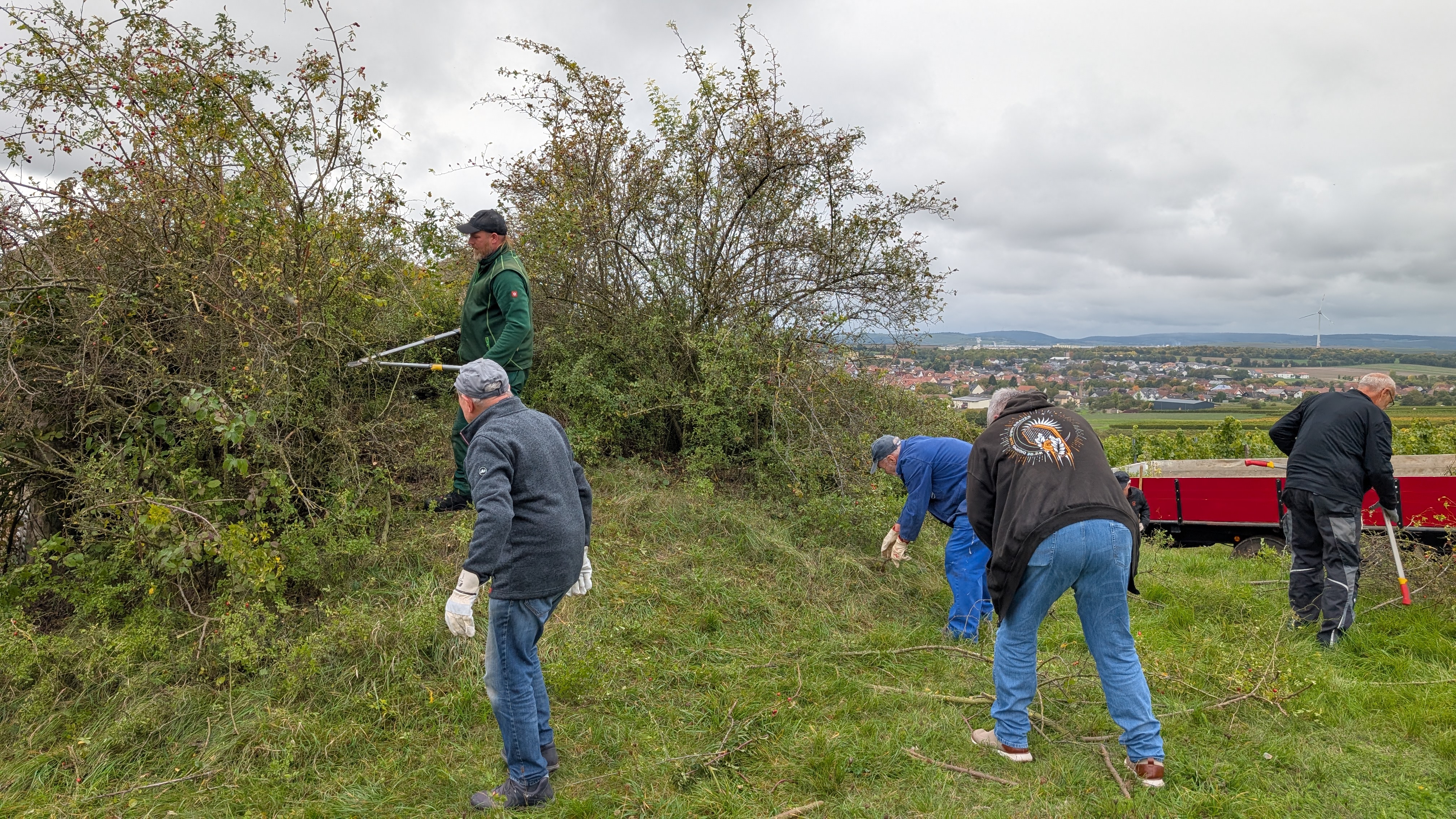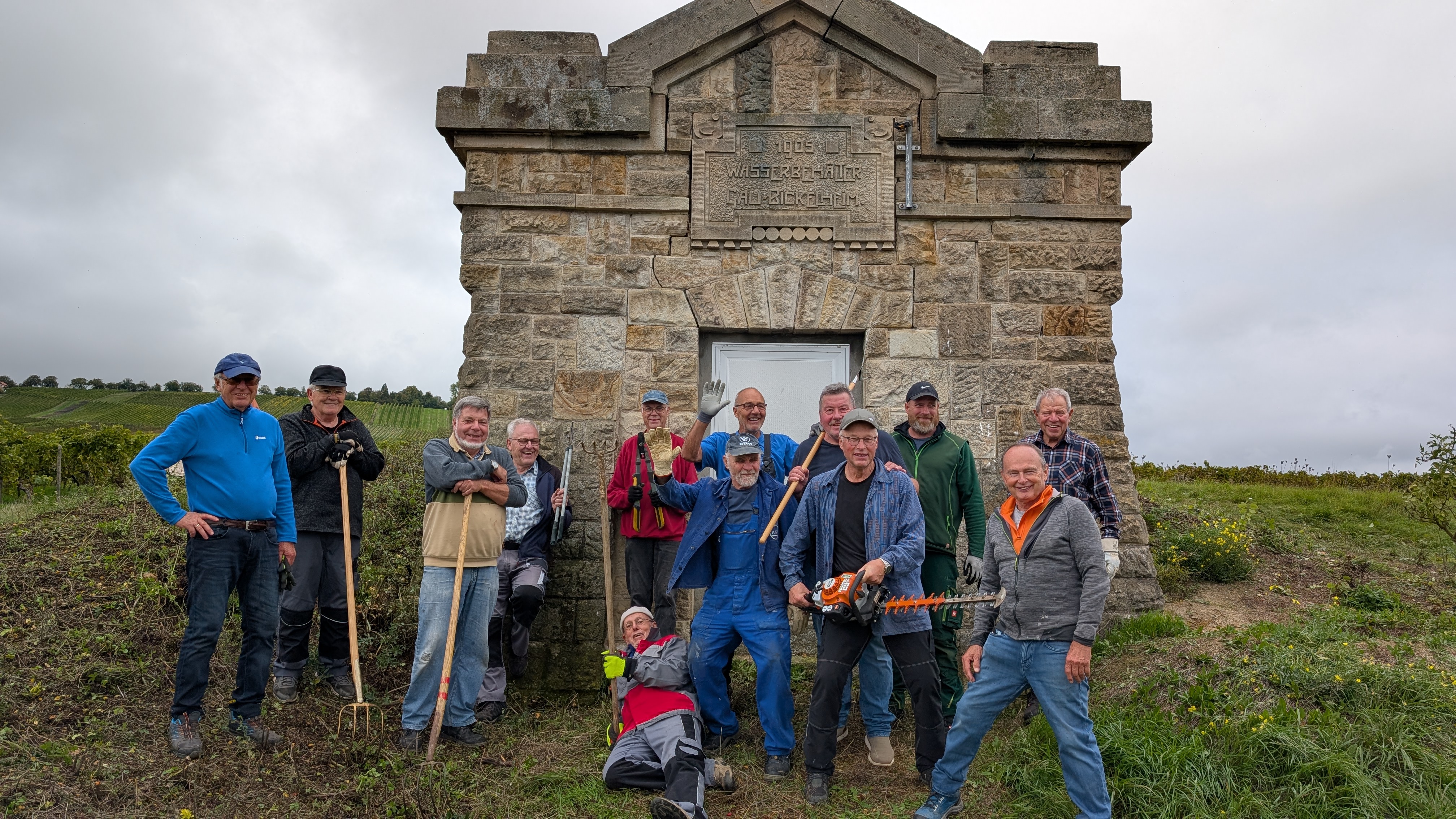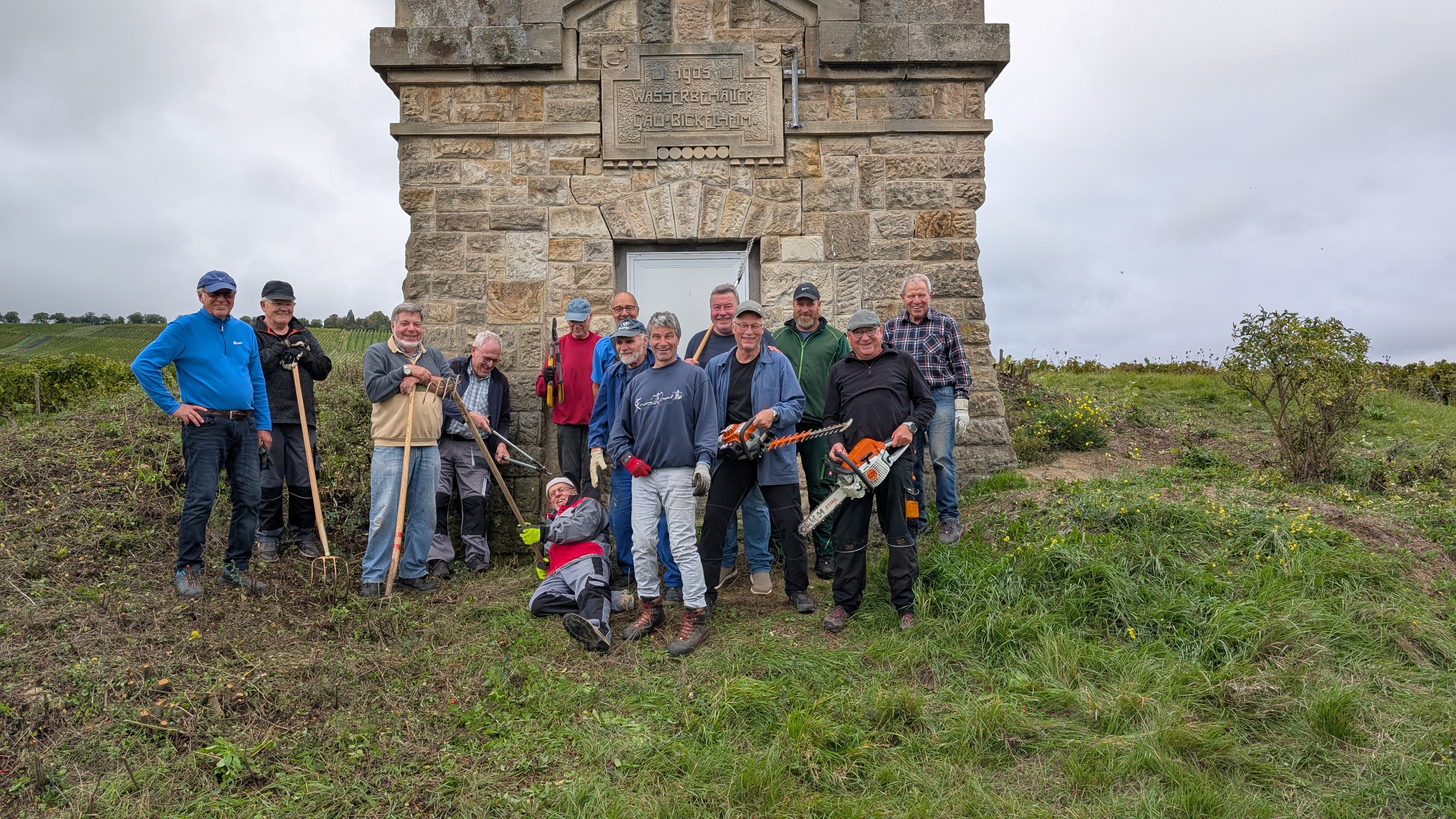Mit einer großen Mannschaft, viel Werkzeug und jeder Menge Muskelkraft sind wir am gestrigen Tag dem Wildwuchs am Wasserhäuschen zu Leibe gerückt!