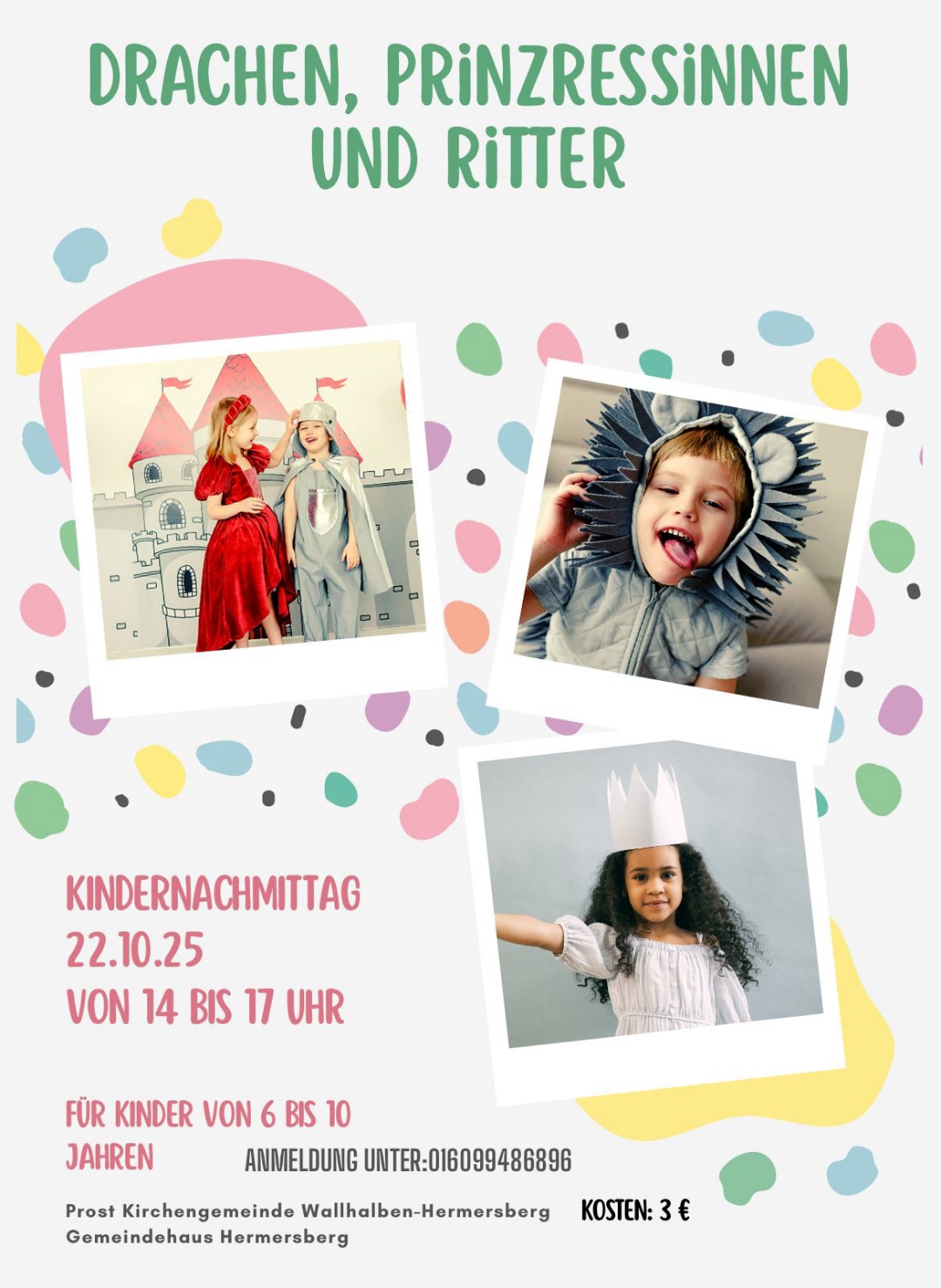 habt ihr Lust auf ein spannendes Abenteuer? Dann kommt zu unserem Kindernachmittag zum Thema „Drachen, Prinzessinnen und Ritter“!