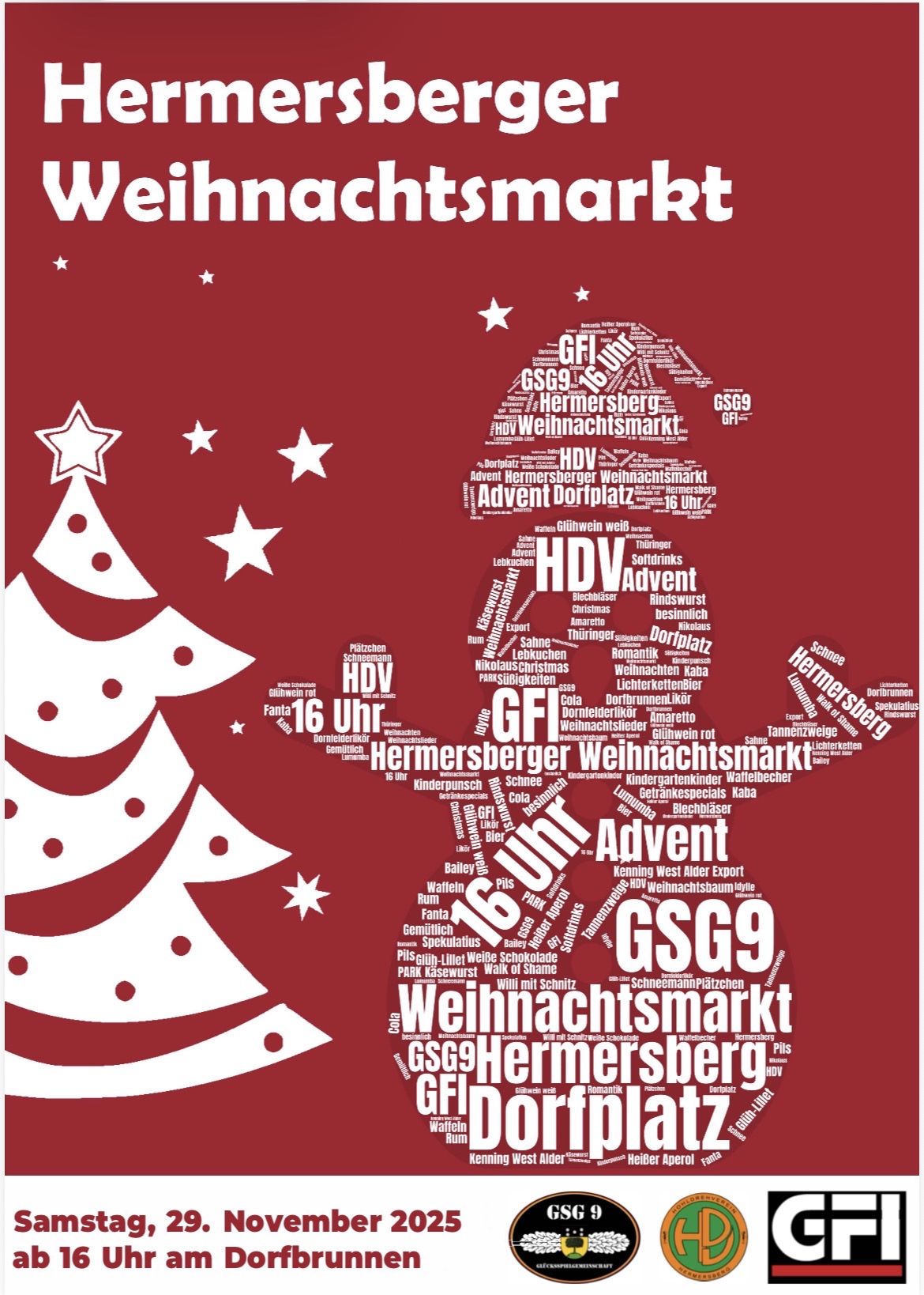 Am Samstag, 29. November 2025, laden Euch der Hohldrehverein (HDV), die Glücksspielgemeinschaft GSG9 und die Gewinner für immer (GFI) herzlich zur gemeinsamen Einstimmung in die Adventszeit ein!