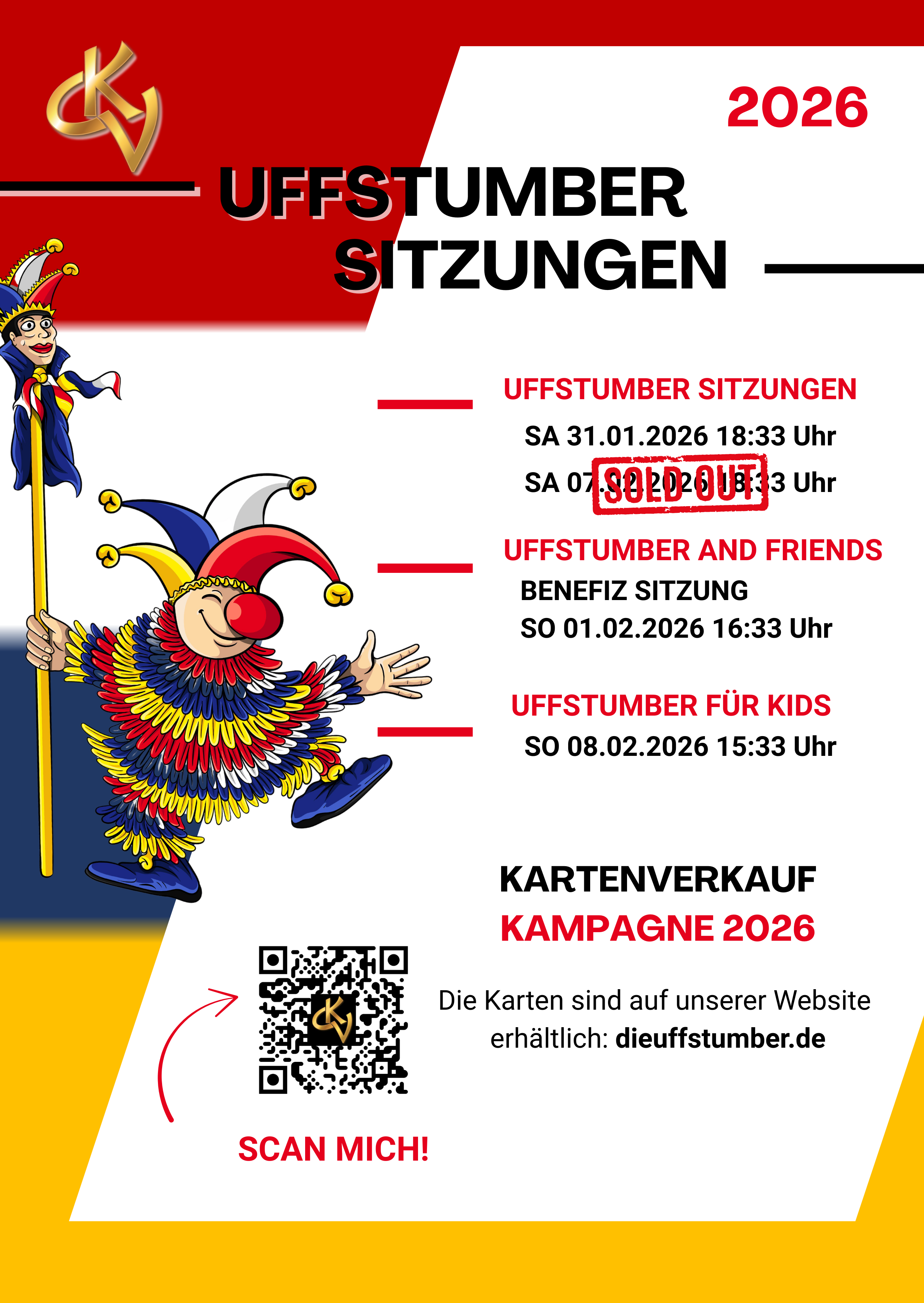 Am Sonntag, 01.02.2026, 16.33h, wird eine hochkarätige Benefizsitzung auf Fernsehniveau zu einem erschwinglichen Ticketpreis von 22 Euro angeboten. Größen aus Mainz bleibt Mainz, der Mainzer Fassenacht insgesamt und Uffstumber-Aktive geben sich die Klinke in die Hand.
