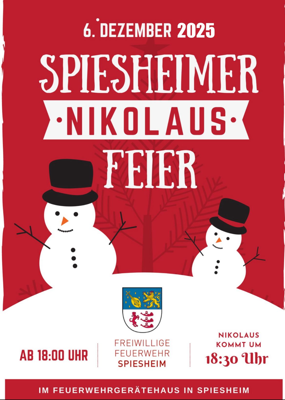 Wir laden euch herzlich zur Nikolausfeier der Spiesheimer Feuerwehr ab 18 Uhr in unser Gerätehaus ein.