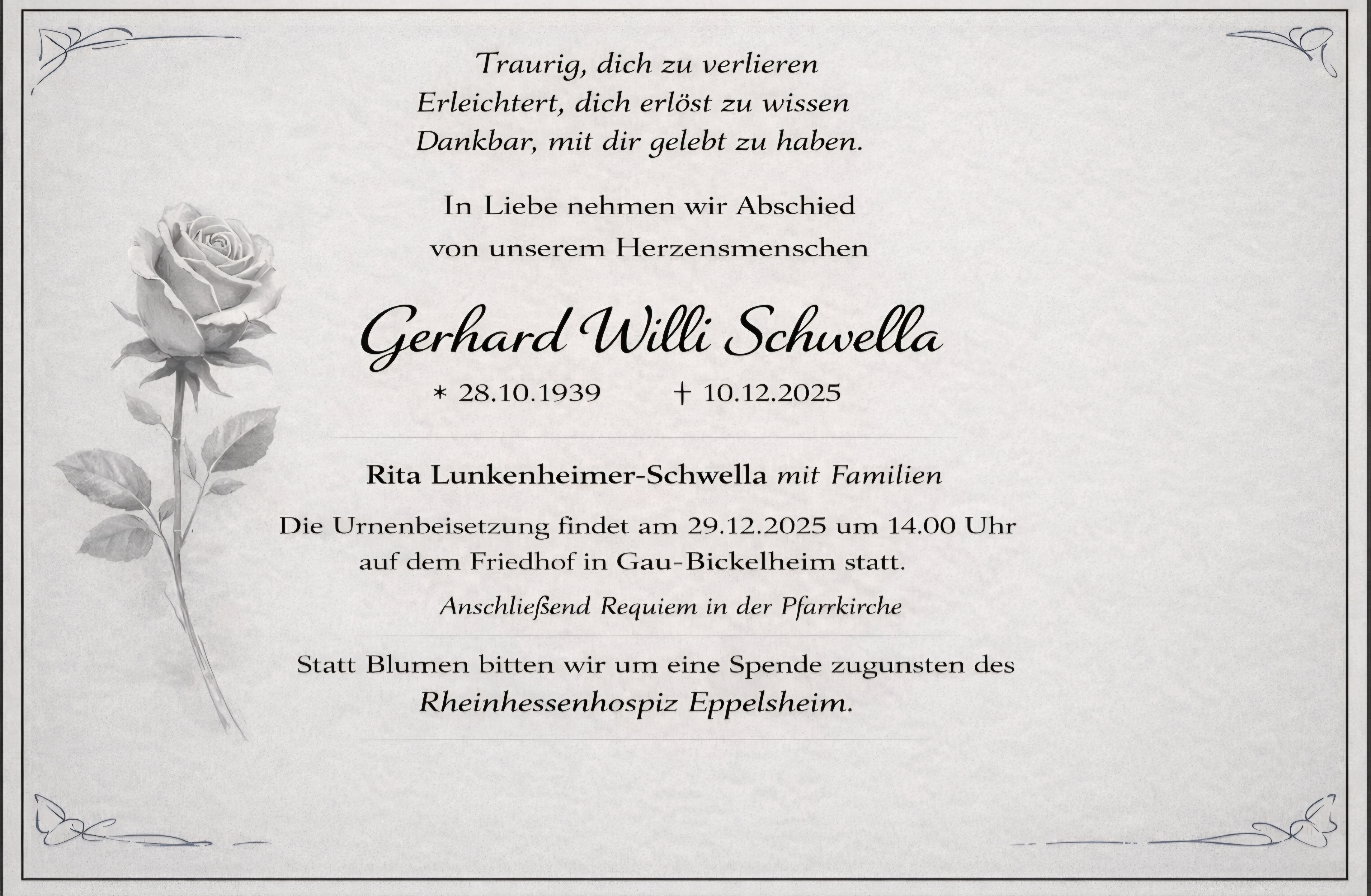 Wir werden Dich immer in Gedanken halten. Deine Grauen