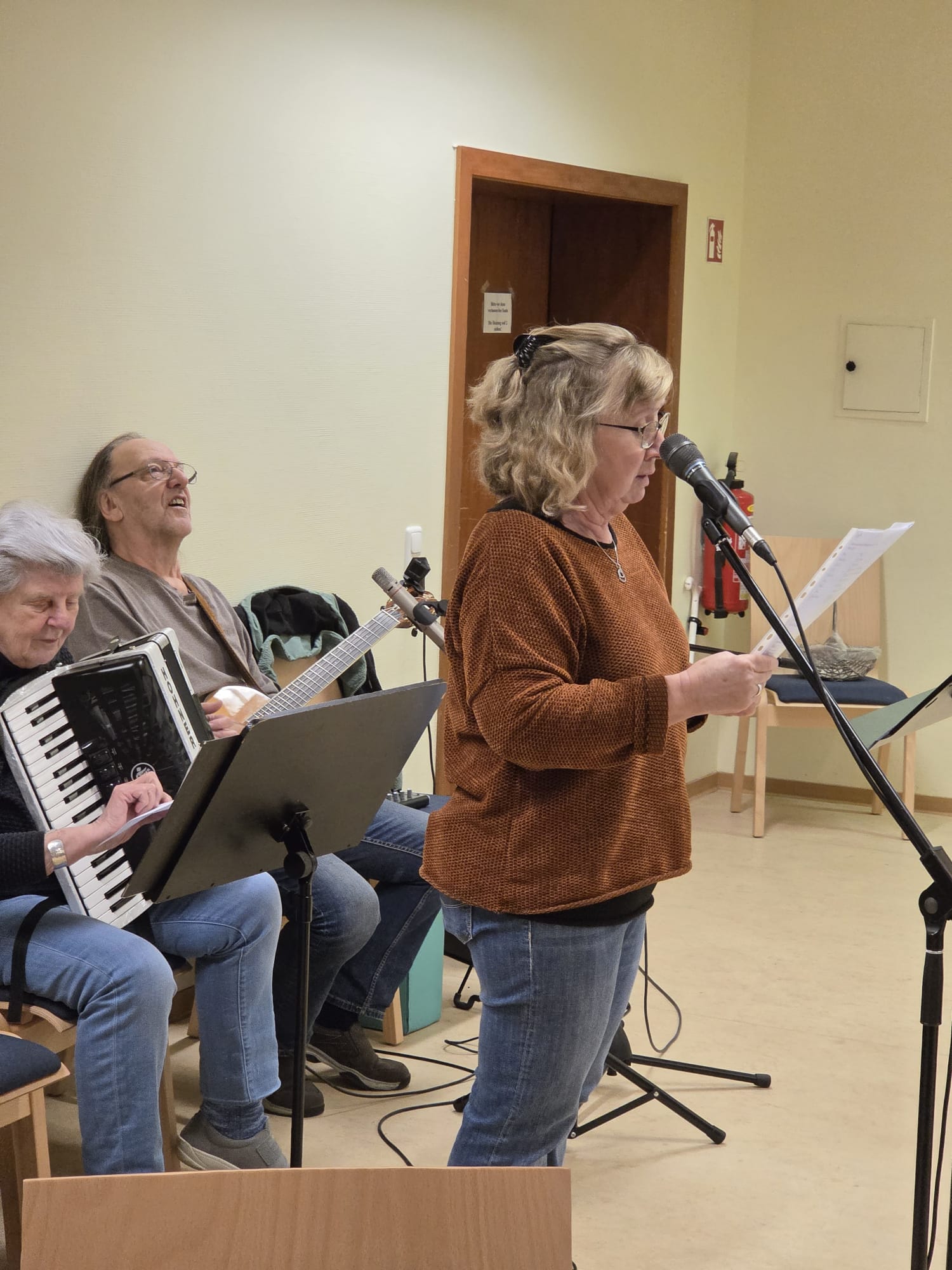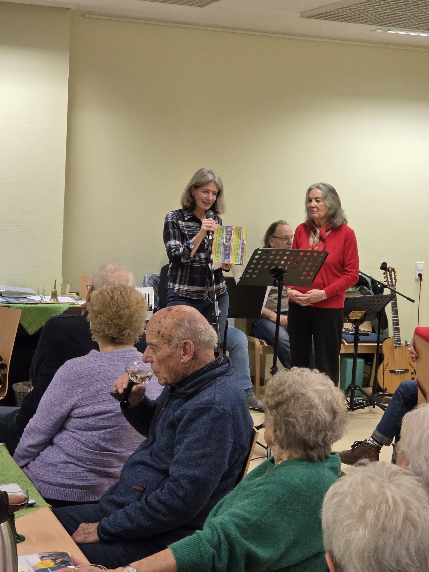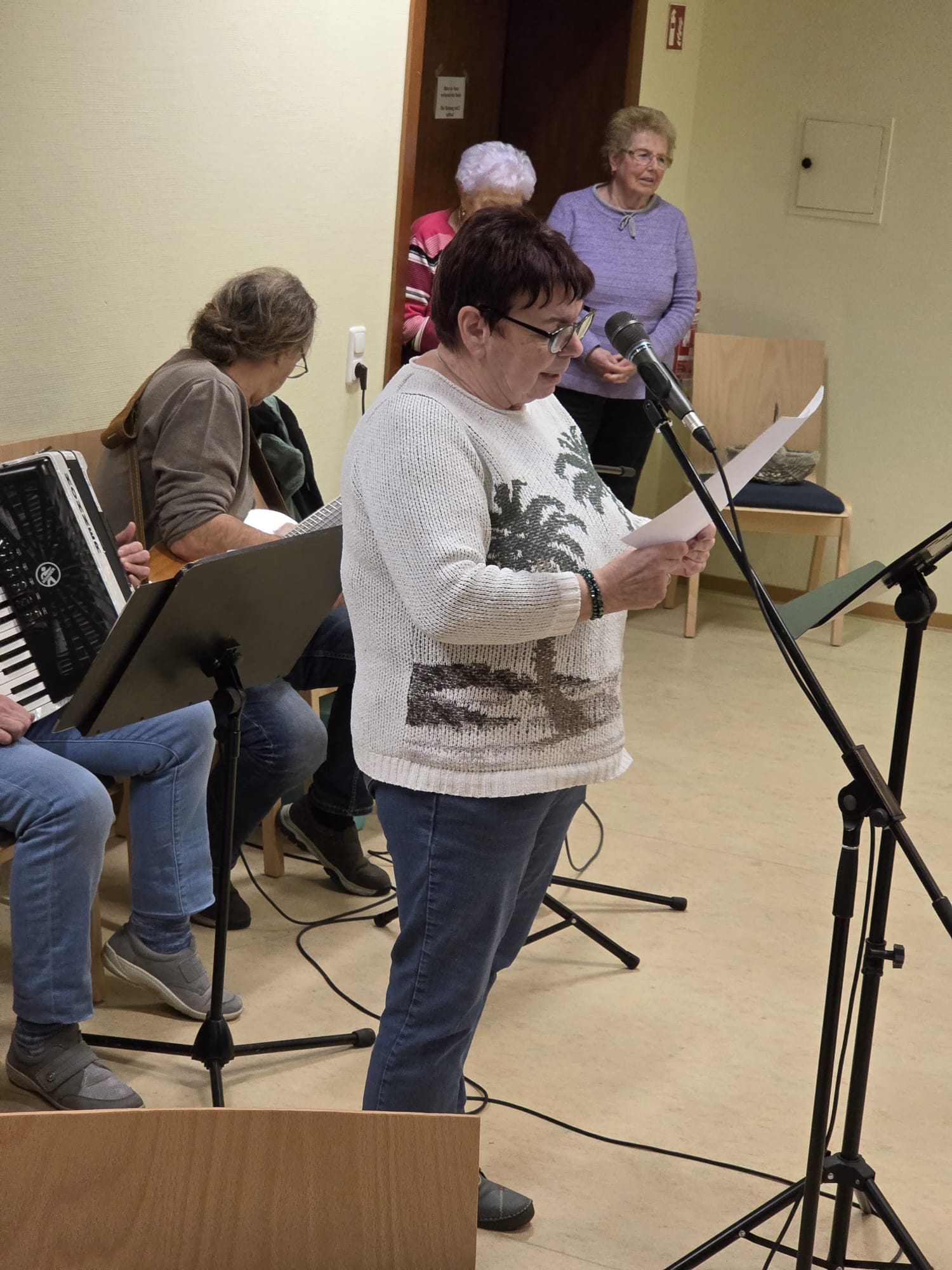Nach der Kaffeepause hatte sich hoher Besuch angesagt. Unsere Ortsbürgermeisterin Sabine Maidhof stellte sich vor und berichtete über die aktuellen Projekte in der Ortsgemeinde und ihren Arbeitsalltag. Im Anschluss kam Herr Klaus Schmidt zu Wort, er ist der neue Digitalbotschafter der Ortsgemeinde. Danach ging es weiter im bunten Programm mit Liedern und Textbeiträgen. Elke Kaiser bat um neue Klamotten, weil ihr altes Nervenkostüm schon völlig abgenutzt sei, Beate Petry klärte auf, warum man von einer Schnapsdrossel spricht und Michael Müller zog das Traumschiff dem Altersheim vor. Marlene Kölsch zog bei der anschließenden Sitzgymnastik alle Register, was mit dem Textbeitrag „Sport ist Mord“ glossiert wurde. Mit dem gemeinsam gesungenen Lied „Kein schöner Land in dieser Zeit“ endete ein unterhaltsamer Nachmittag. Team und Gäste freuen sich schon auf den 11. Februar unter dem Motto „Die fünfte Jahreszeit“.