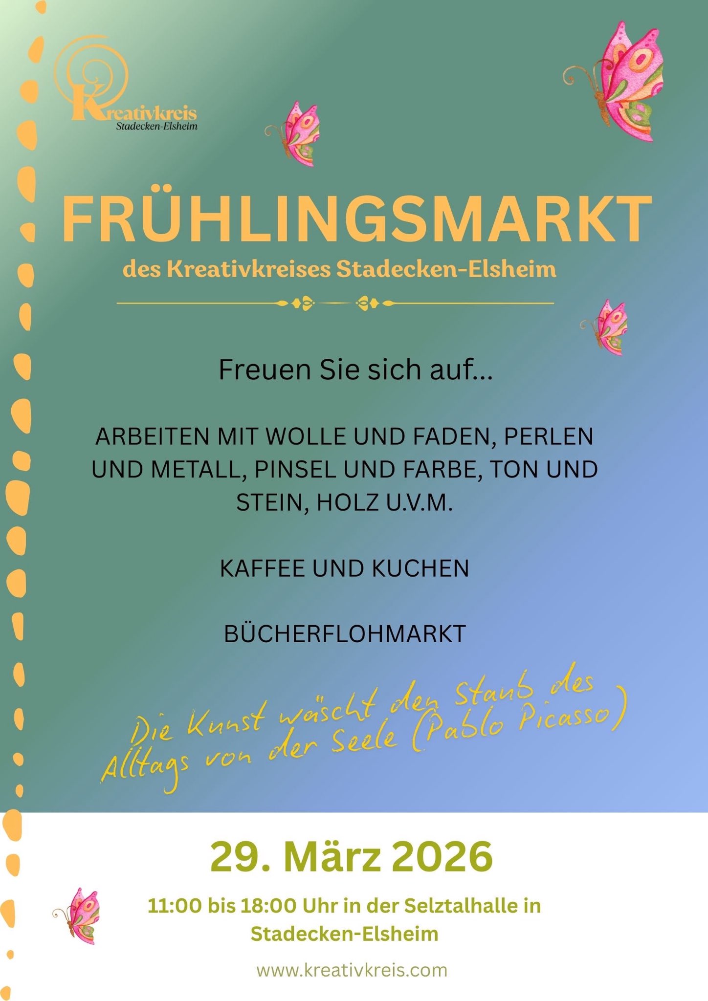 Dieses Jahr findet der beliebte Frühlingsmarkt des Kreativkreises am 29.03. zwischen 11:00 und 18:00 in der Selztalhalle statt.
