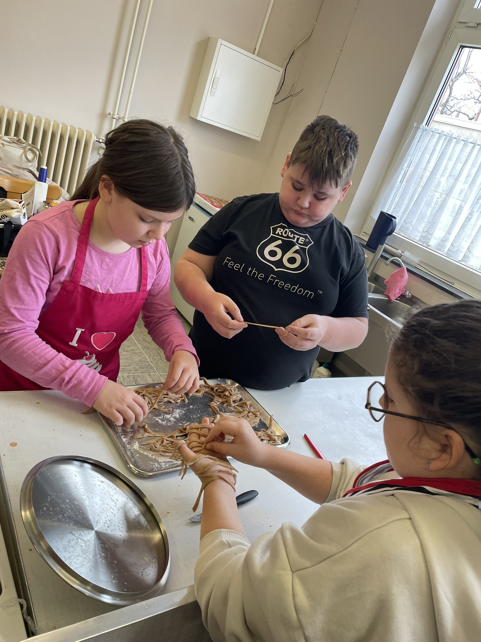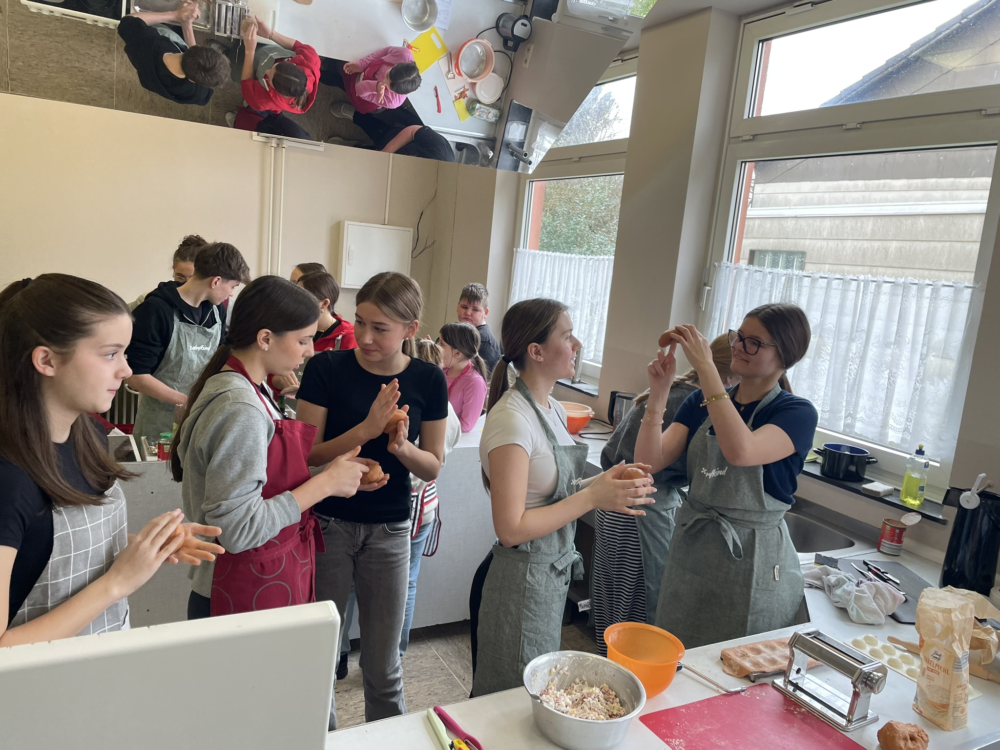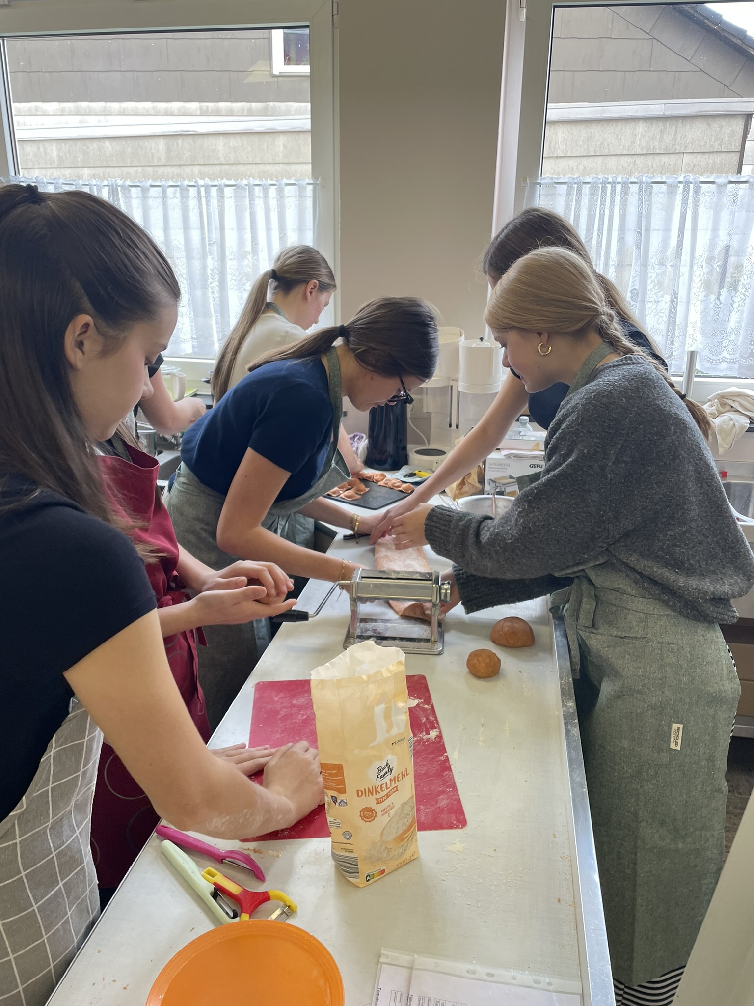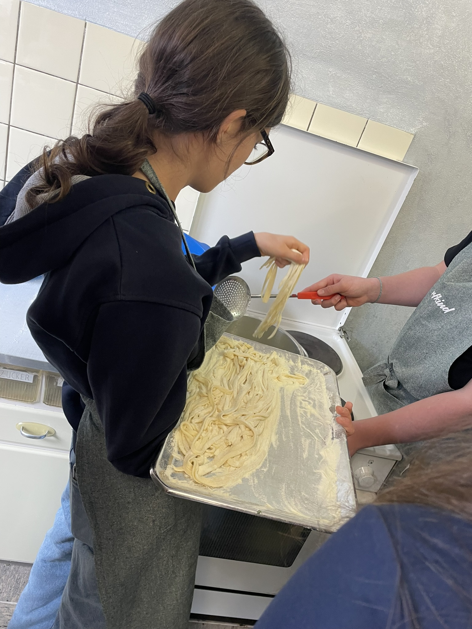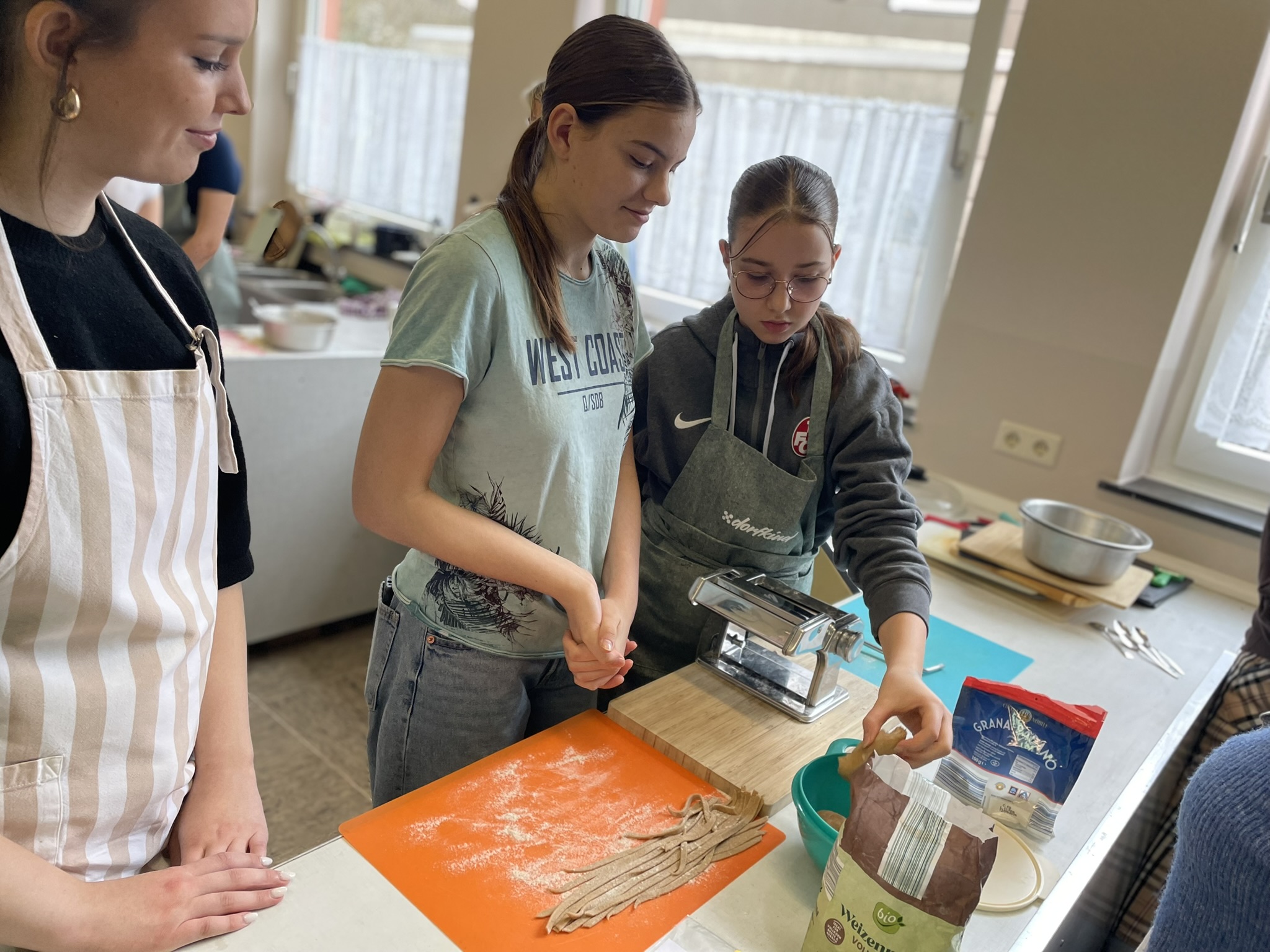 Die Jugendlichen duften aus drei verschiedenen Teigsorten Nudeln selbst herstellen und natürlich drei verschiedene Soßenvariationen dazu kochen.