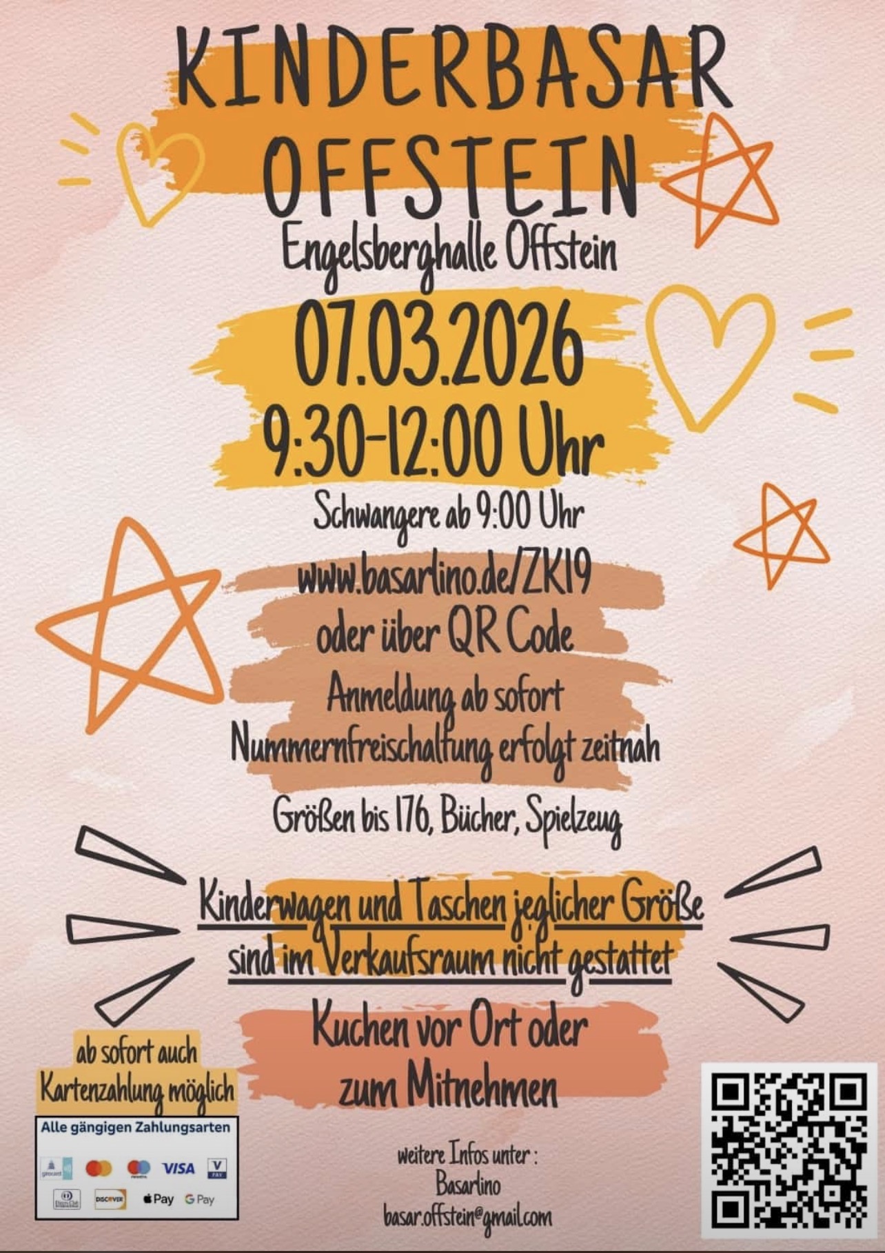 Wir freuen uns weiterhin über Helferinnen und Helfer – ob beim Basar selbst oder anschließend zum Zurücksortieren. Schreib uns einfach an: basar.offstein@gmail.com.