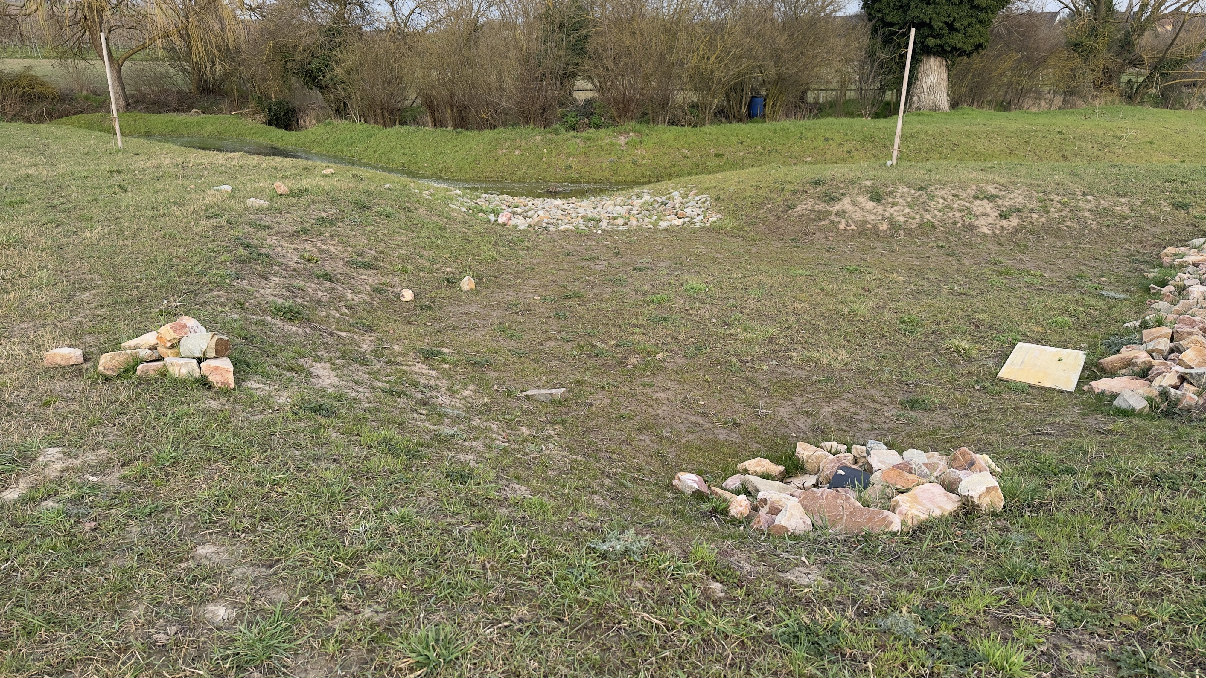 Im Regenrückhaltebecken am Weg nach Hillesheim sind Steinhaufen an Ein- und Auslässen der Rohre aufgebaut, damit Rohre nicht verstopfen, bzw. die Erde nicht ausgewaschen wird. Das Becken ist keine Spielwiese. Das bedeutet auch, dass die Steine da liegenbleiben müssen wo sie liegen. Eigene Steinhaufen zu bilden, wie auf dem Bild zu sehen, macht nur unnötige Arbeit für den Gemeindearbeiter. Deshalb die Bitte an die Eltern mit ihren Kindern zureden die Steine liegen zu lassen und an anderer Stelle zu spielen. Das Becken wurde so angelegt, dass wir keinen Zaun aufstellen mussten. Es wäre schade, wenn wir uns zur Aufstellung gezwungen sehen.