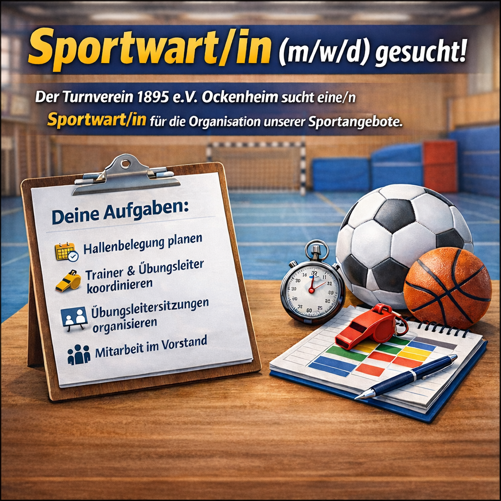 Der Turnverein 1895 e.V. Ockenheim sucht eine/n Sportwart/in für die Organisation unserer Sportangebote.